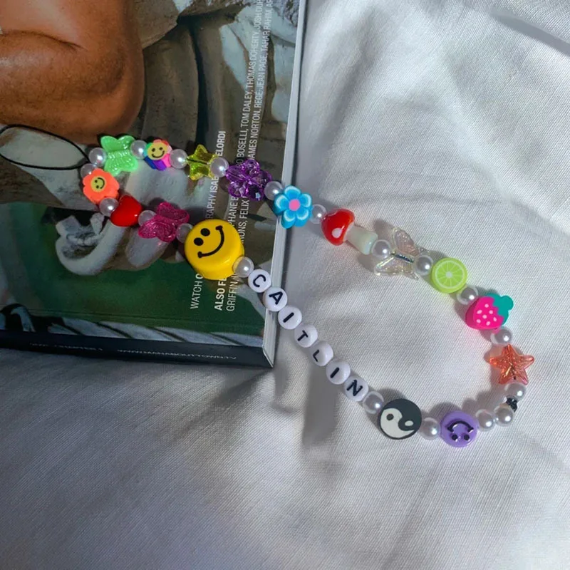 Бесплатная доставка, цветные бусины, цепочка для телефона, шнурок в виде бабочки, ремешки с имитацией жемчуга