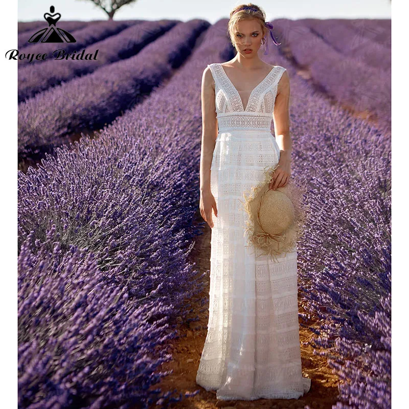 Свадебные платья в стиле бохо, Пляжное кружевное платье с глубоким ...