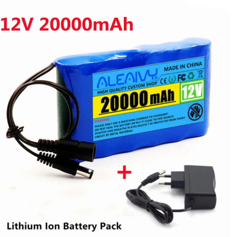 18650 перезаряжаемая батарея 12 в 20000 мАч литиевая батарея с емкостью постоянного тока 12,6 в 20 Ач CCTV камера монитор с зарядным устройством