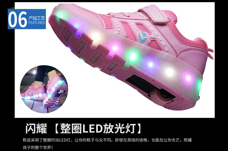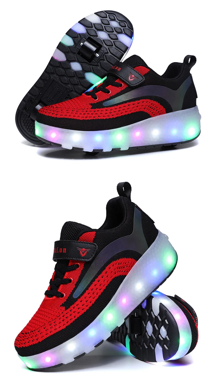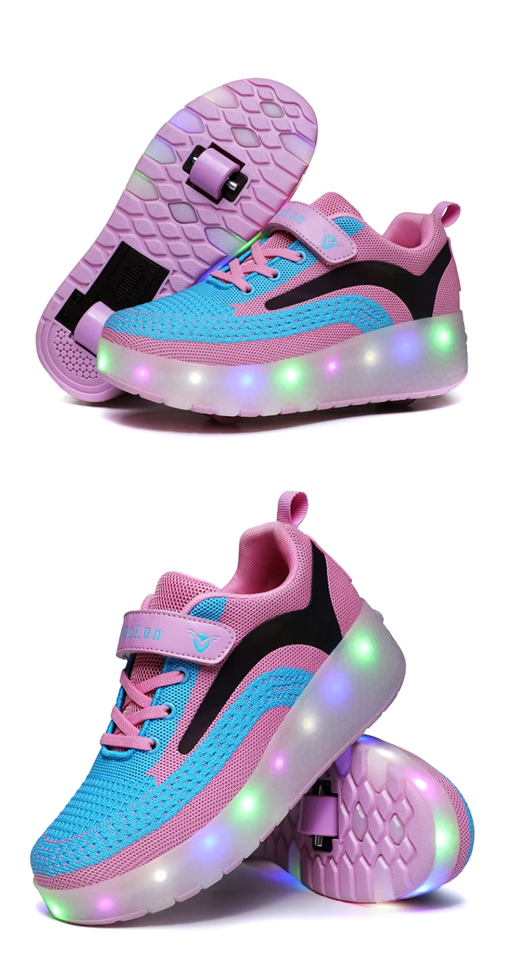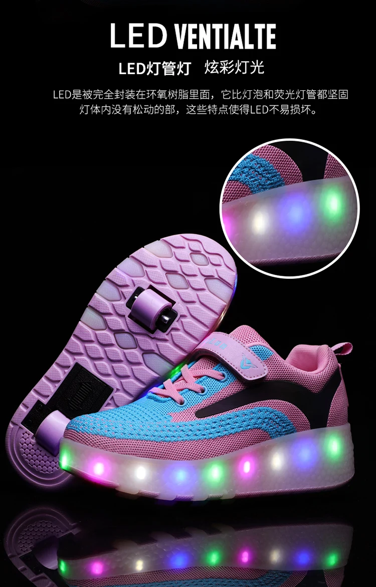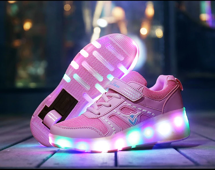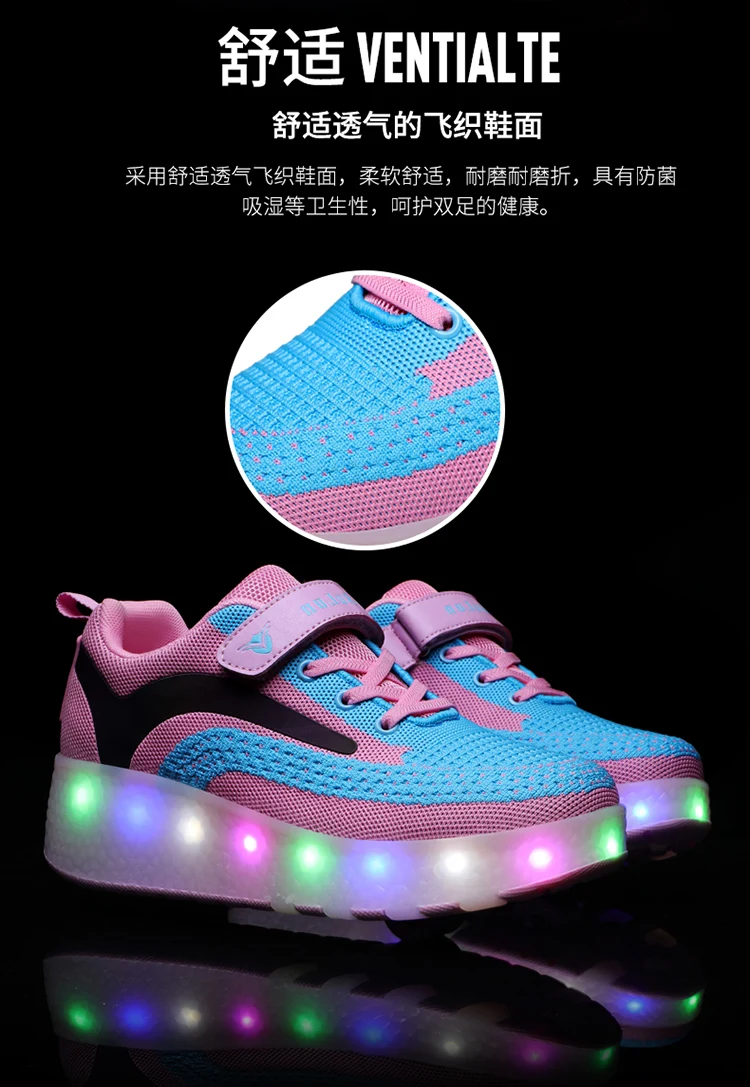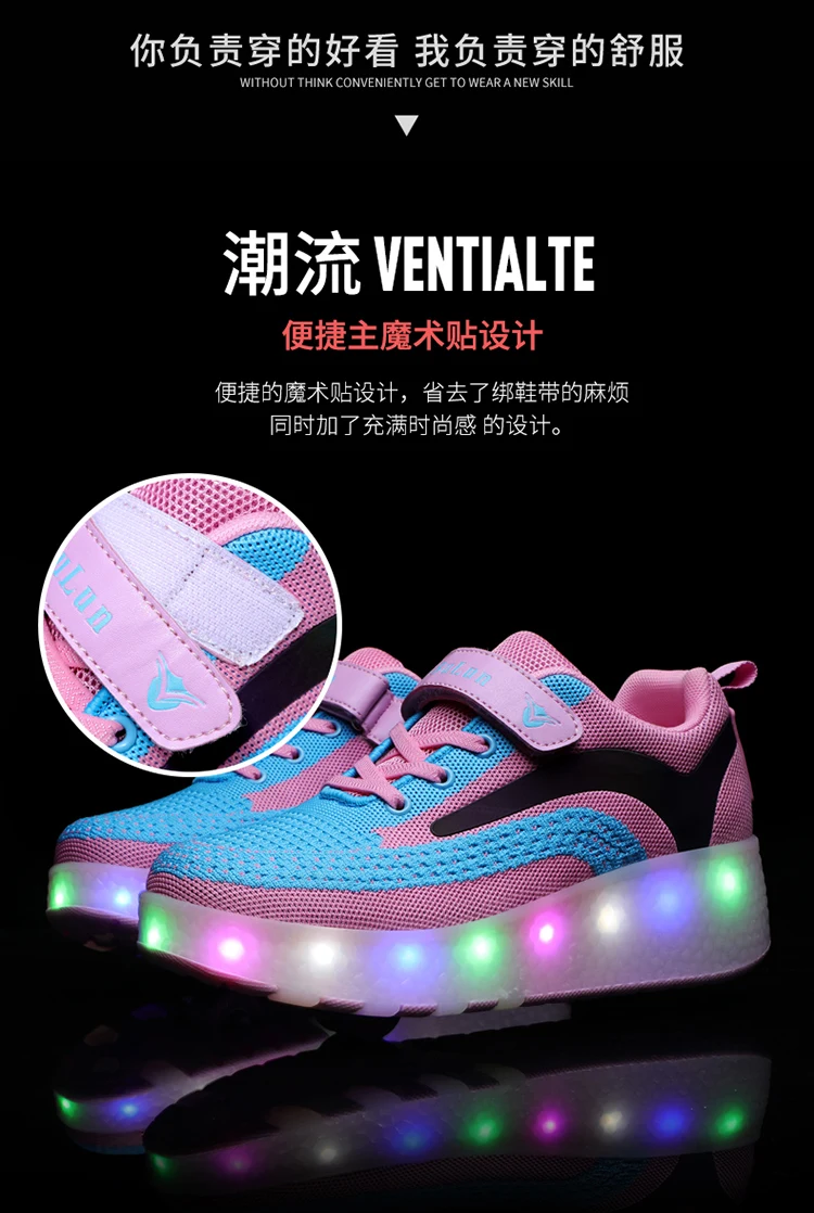 Детские светящиеся кроссовки с двумя колесиками, легкая обувь для р...