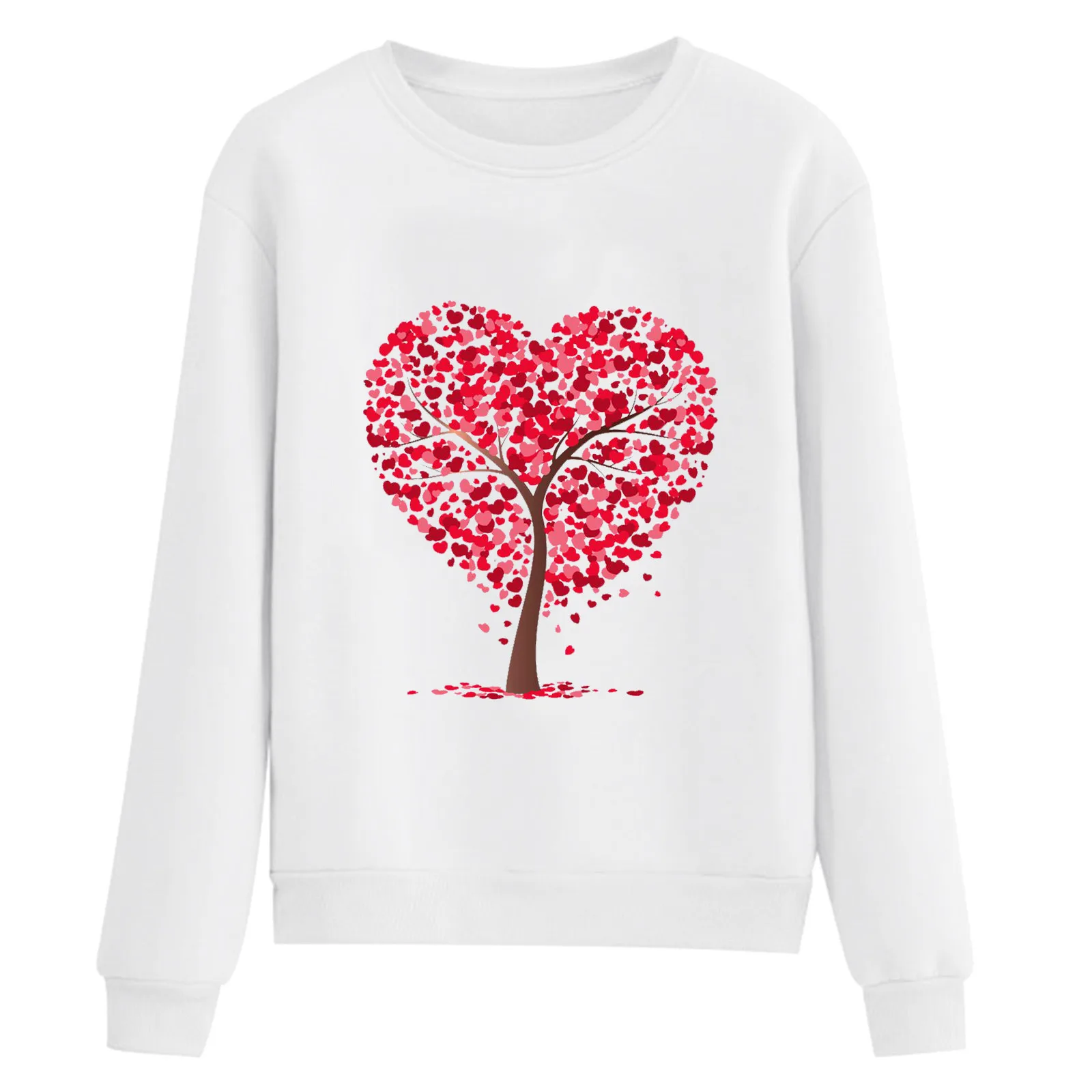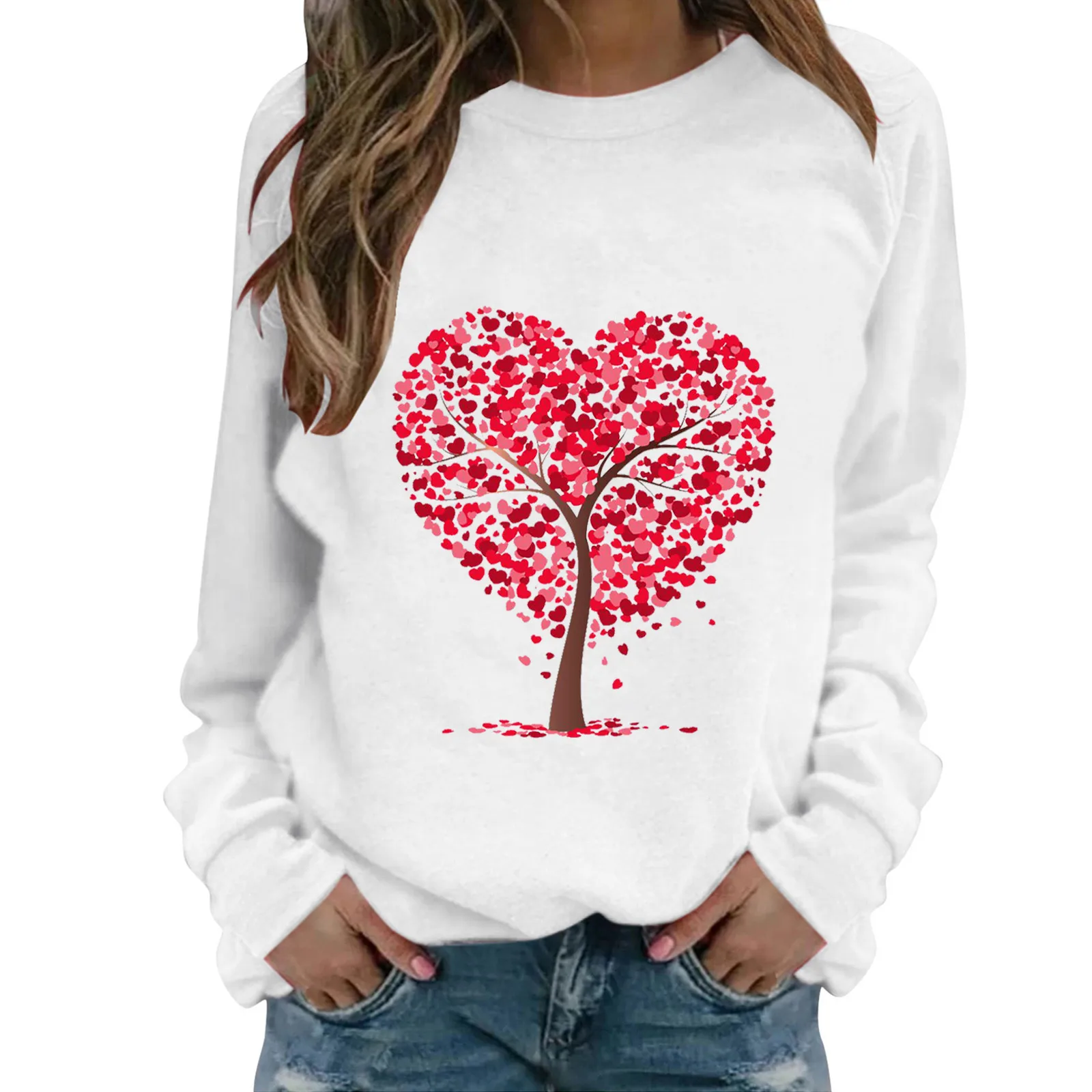 Женский свитшот с длинным рукавом, круглым вырезом и принтом сердечек