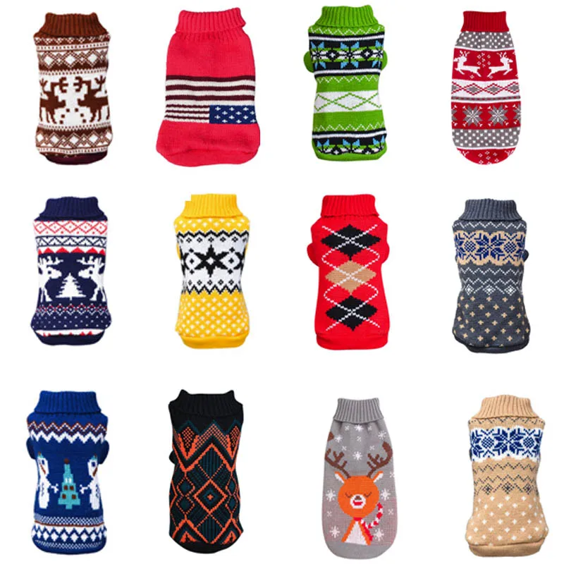 Рождественская собака Кот свитер со щенком; Зимняя теплая одежда дл...