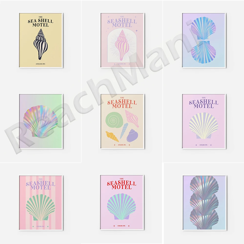 Принты Shell Motel, Shell Dream, радужные ракушки, пастельные датские градиентные художественные плакаты, Ретро плакат 80-х годов