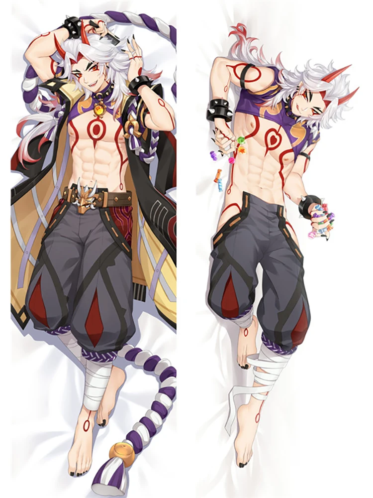 Genshin ударная голова аратаки банды аниме аратаки Итто обнимая тело мультфильм Подушка Чехол на заказ Подушка постельные принадлежности
