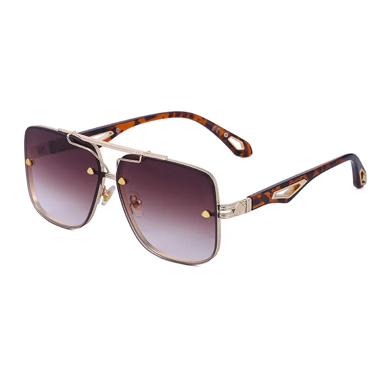 Модные прямоугольные солнцезащитные очки без оправы женские деревян...