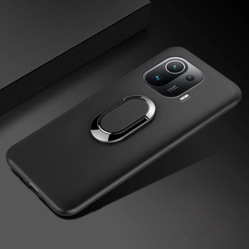 Роскошный чехол для Xiaomi Mi 11 Pro, 8 ГБ, 128 ГБ, 6,81 дюйма, мягкий черный силиконовый магнитный автомобильный держатель с кольцом, чехол для Mi11 Pro