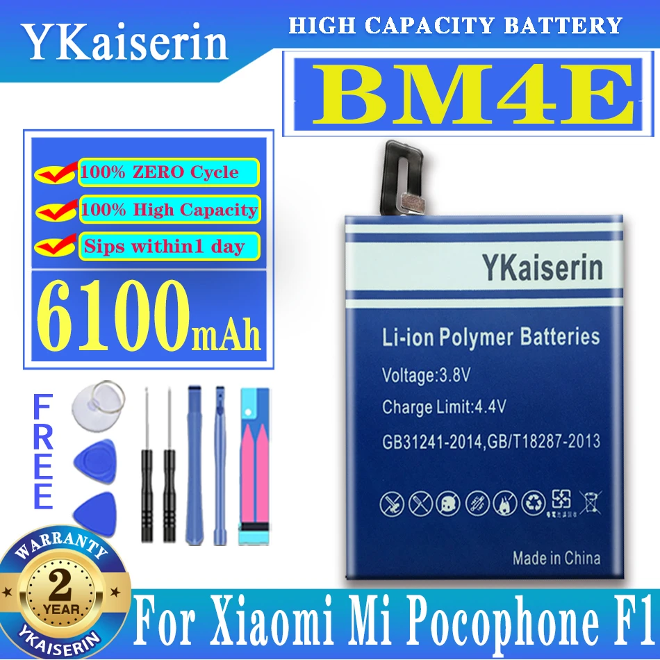 Оригинальный аккумулятор ykaisсеребрин для Xiaomi Mi BM4E, батарея для телефона Xiaomi Mi Pocofone Poco Pocophone F1, 6100 мАч, батареи, бесплатные инструменты