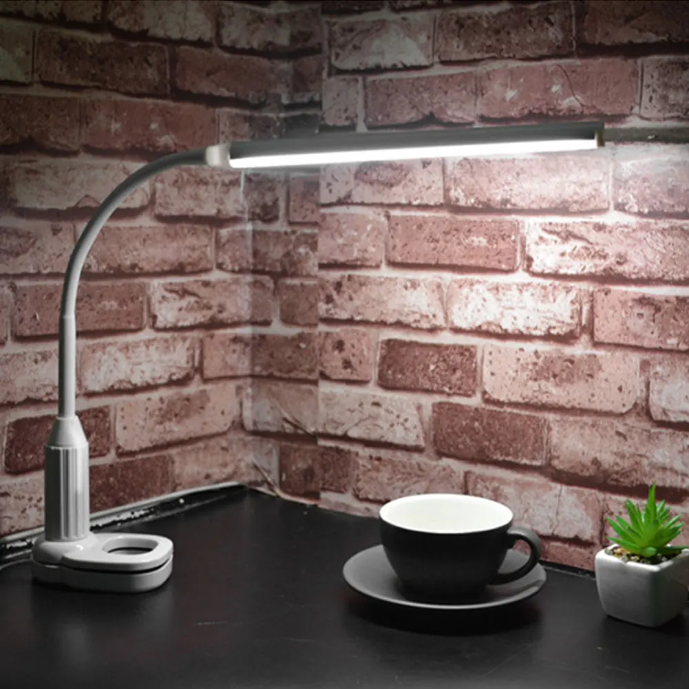 Белый светильник для чтения с защитой глаз, с зажимом, Современная Регулируемая Настольная лампа с USB и плавной регулировкой яркости
