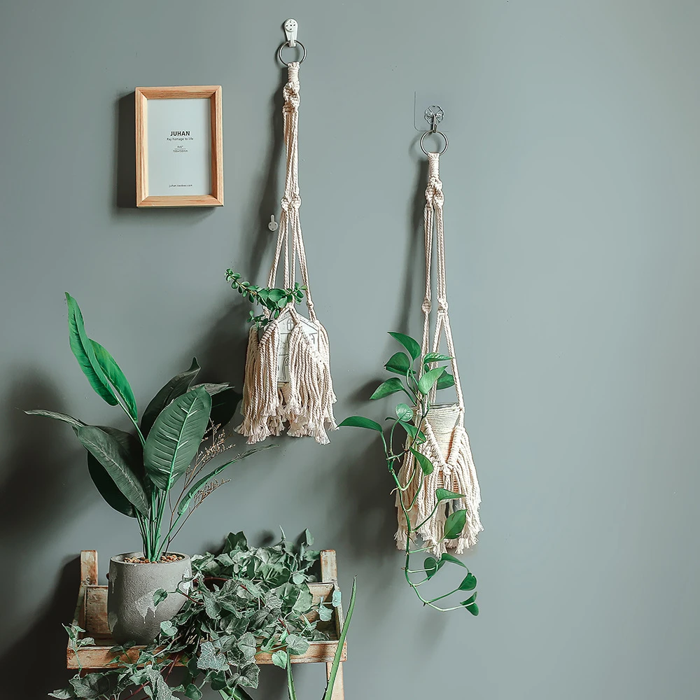 Висячие, в стиле бохо плетеная веревка из хлопка, макраме, настенные держатели для цветочных Горшков и растений, украшения для помещений и сада