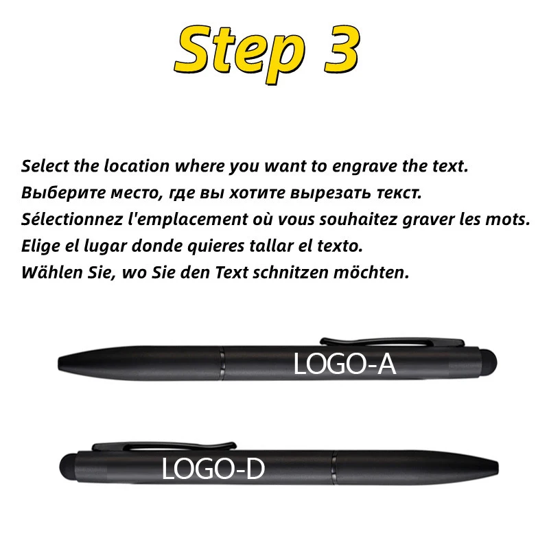 Информация о позиции логотипа(Примечание: выберите более двух позиций гравировки и добавьте плату за обработку $0,50 за ручку.)