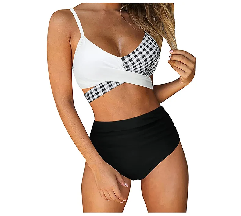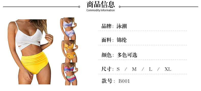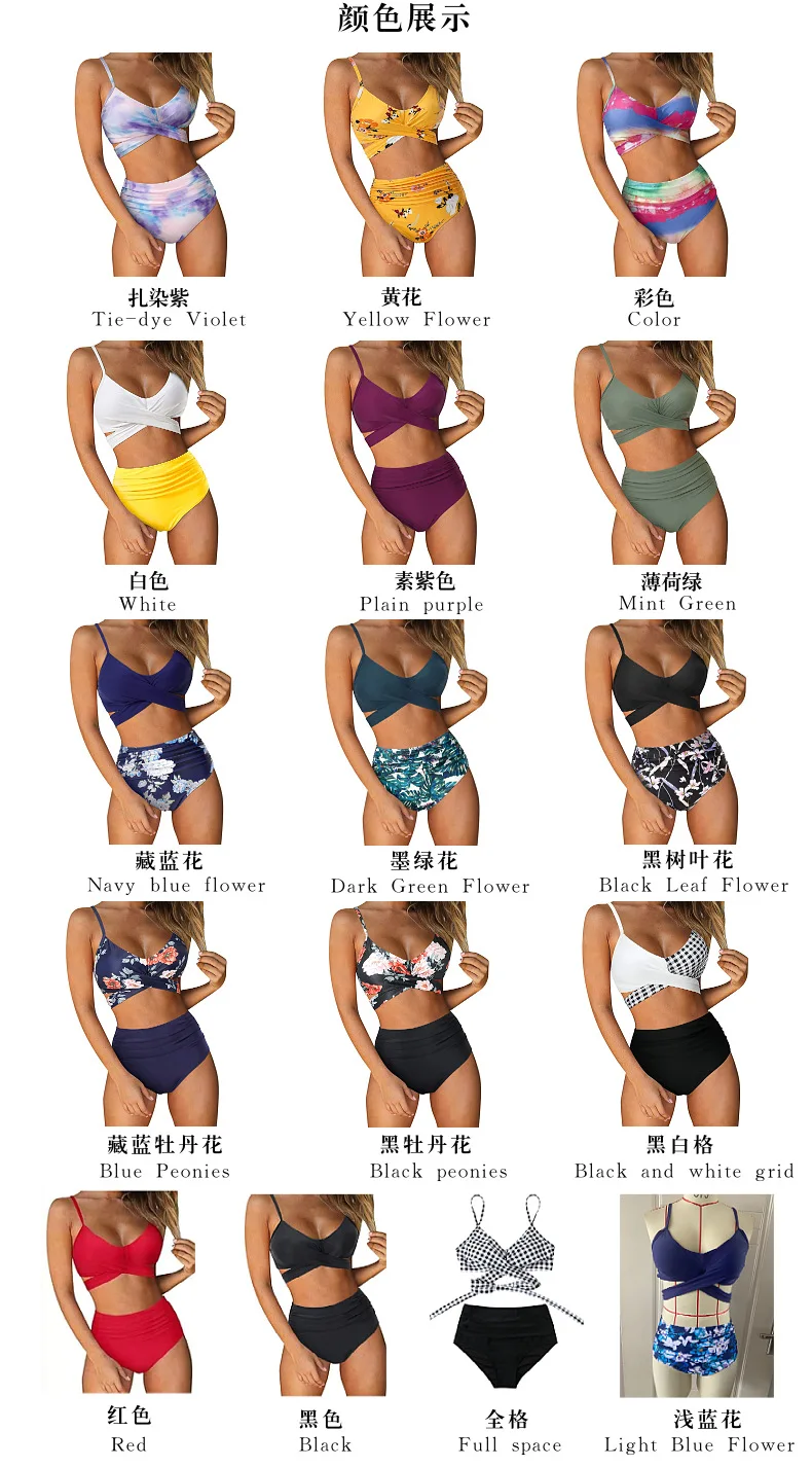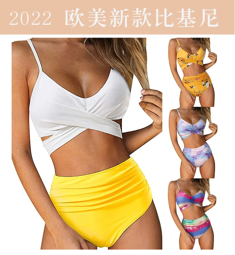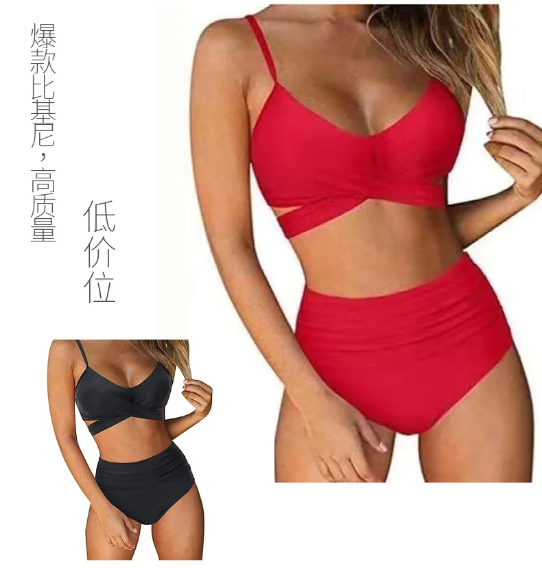 Женское бикини с завышенной талией, соблазнительный однотонный купальник с перекрестными лямками, бикини большого размера, пляжный купальник с завышенной талией