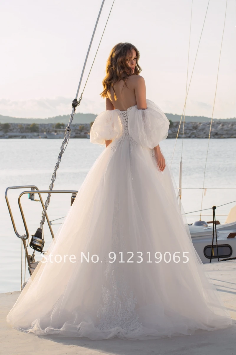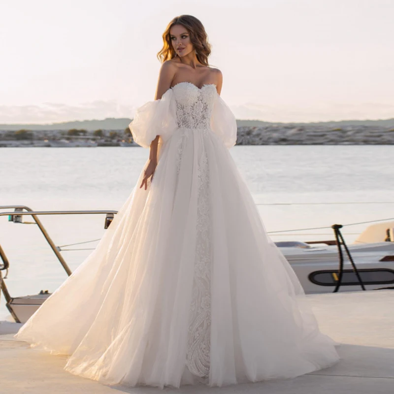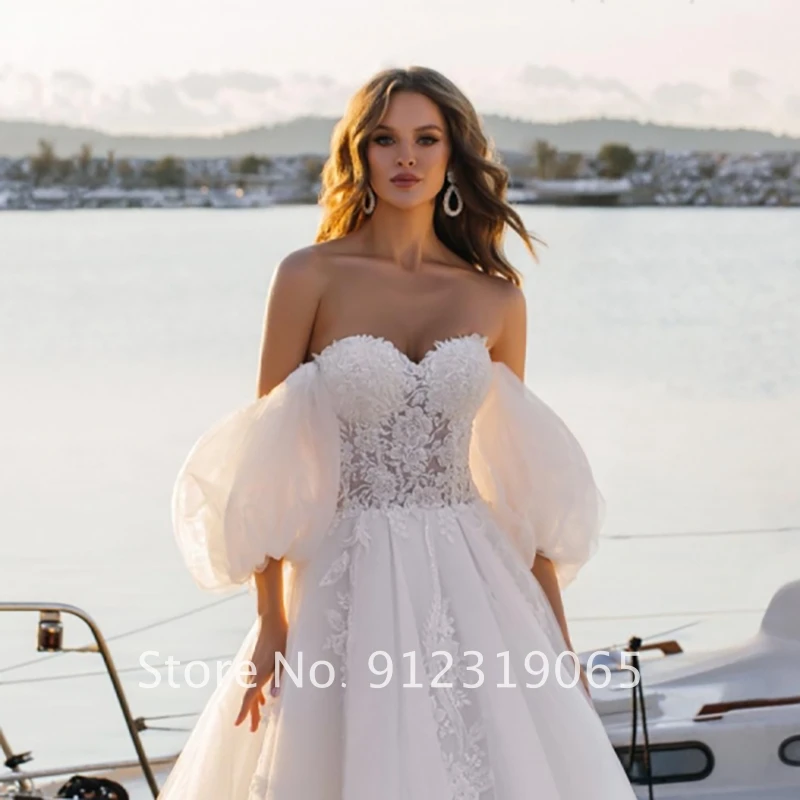 Женское свадебное платье с открытыми плечами Morden, ТРАПЕЦИЕВИДНОЕ ПЛАТЬЕ из фатина в богемном стиле, с аппликацией в стиле бохо, пляжное платье невесты со шлейфом