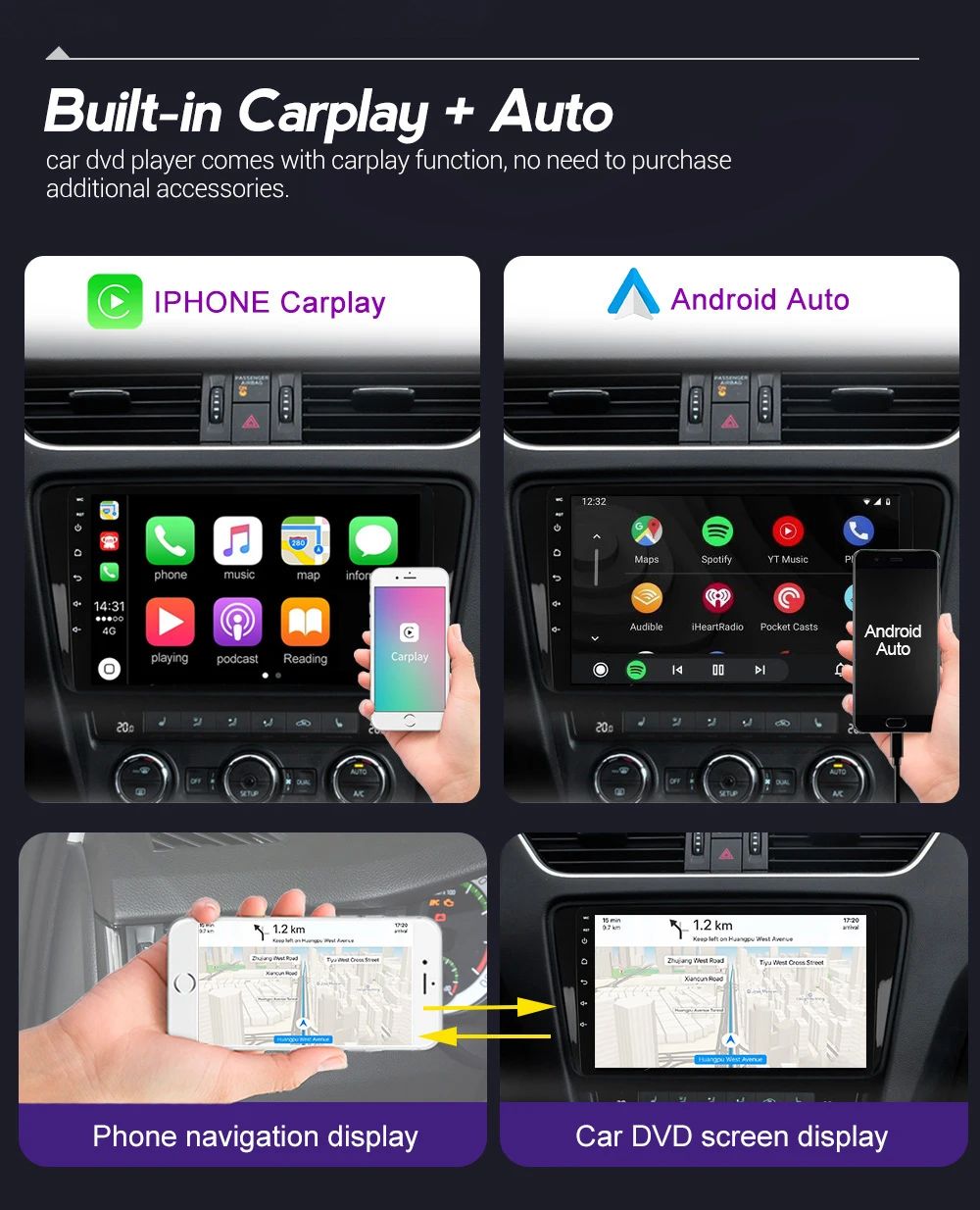 Автомобильное радио, мультимедийный плеер CarPlay, 6 + 128 ГБ, для ...