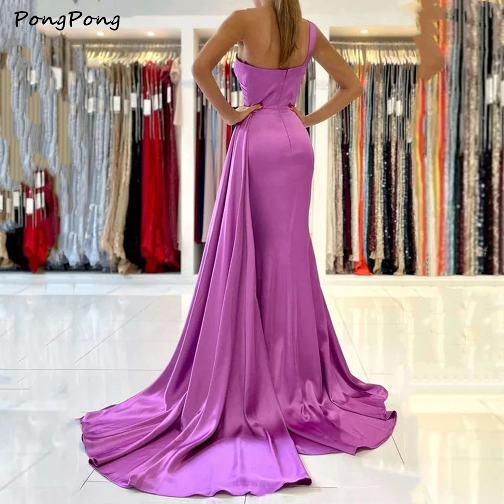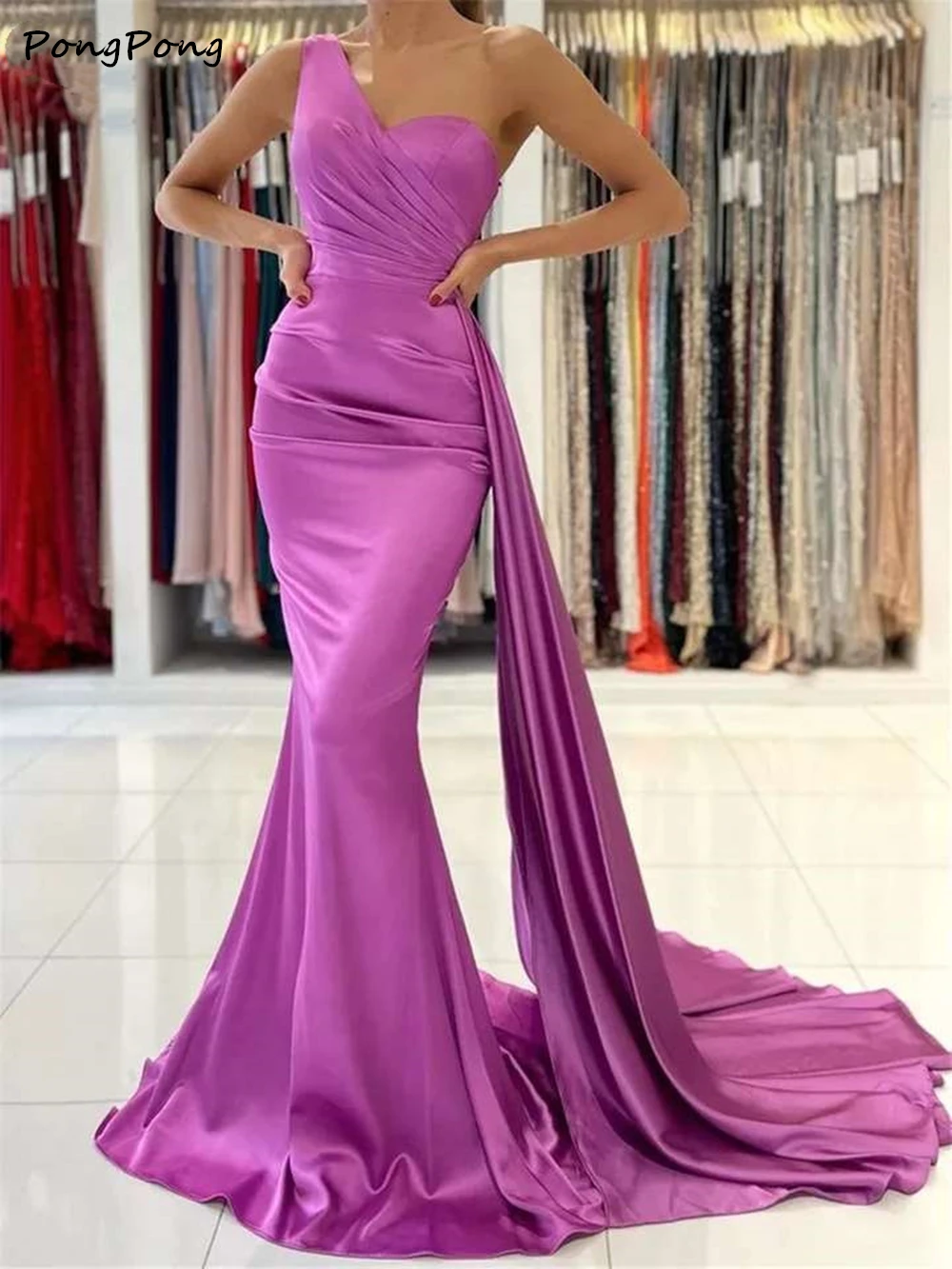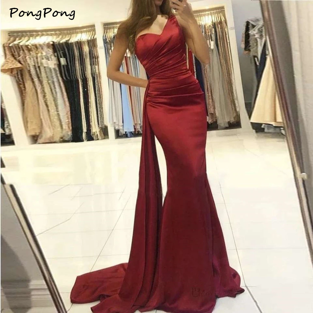 Женское атласное платье с юбкой годе, длинное вечернее платье бордового цвета с одним открытым плечом, со шлейфом и лентами, платье для свадебной вечеринки, 2021