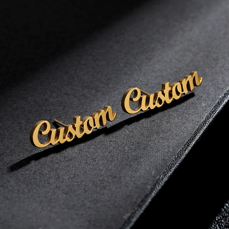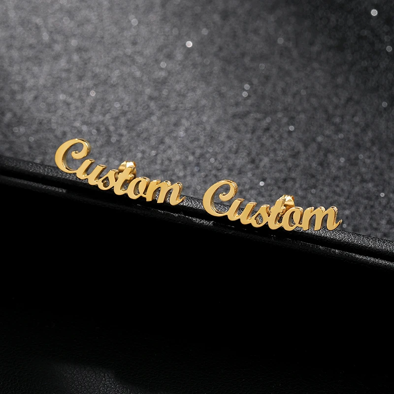 Stainless Steel Gold Stud Earrings Aretes De Mujer Custom Name Pers...