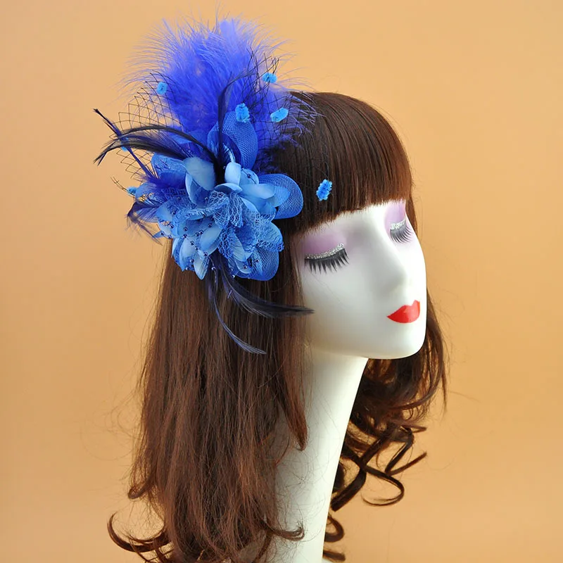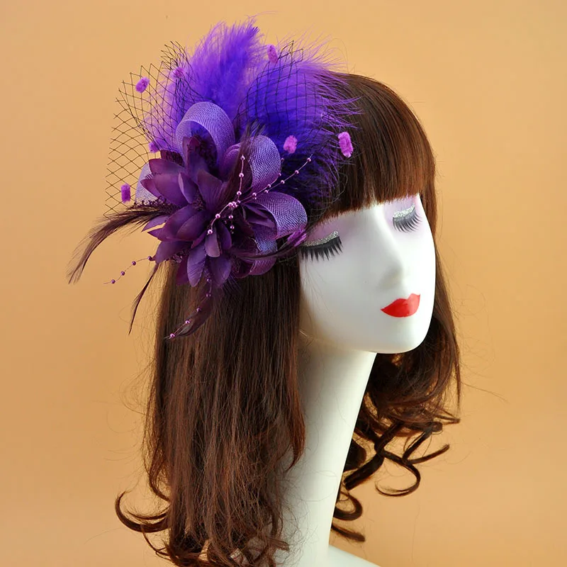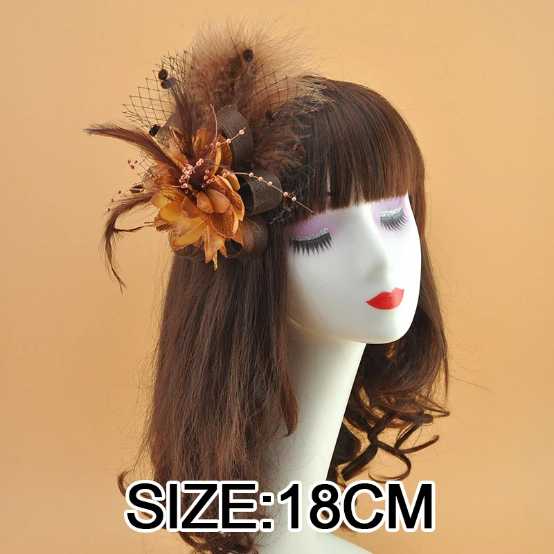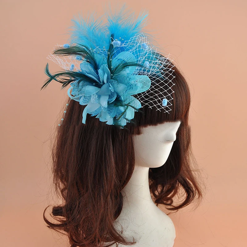 Женская сетчатая шляпка, однотонная Вуалетка с цветами и перьями, д...