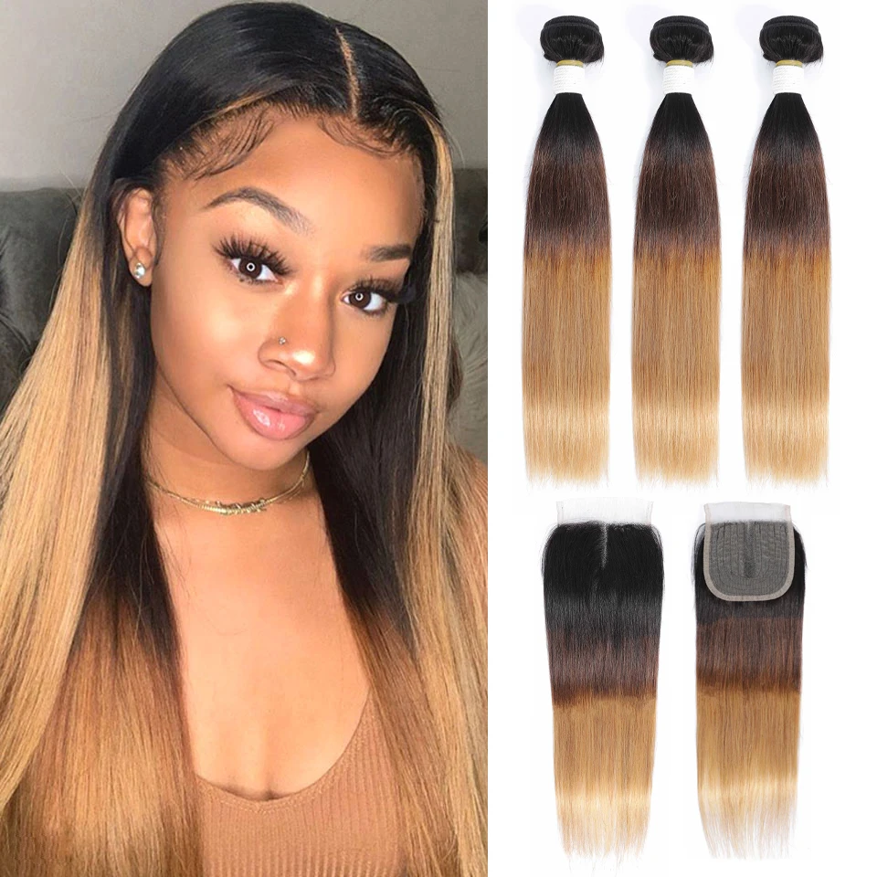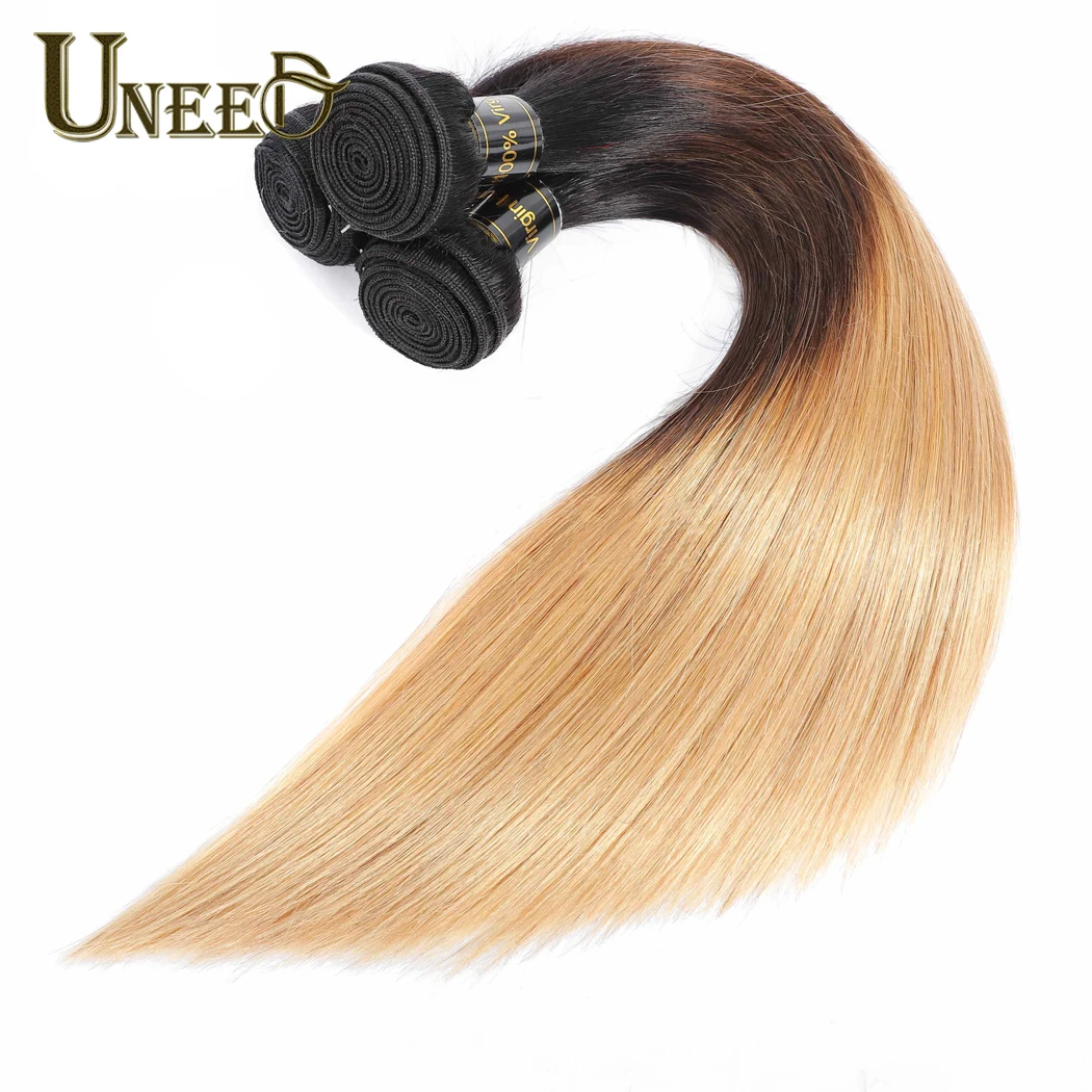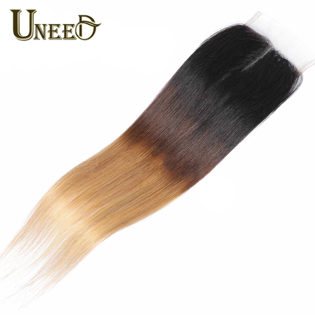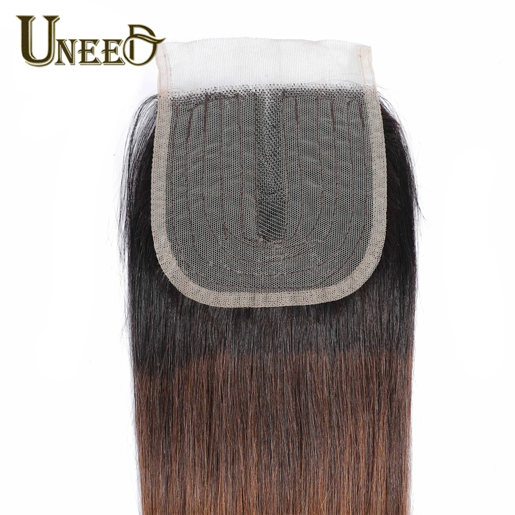 Прямые человеческие волосы Uneed с эффектом омбре, 3 пряди с кружевной частью 4x4X1T, волосы Remy 1b427, перуанские волосы, пупряди с застежкой