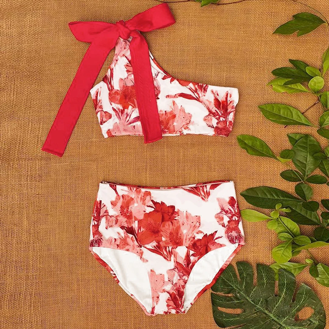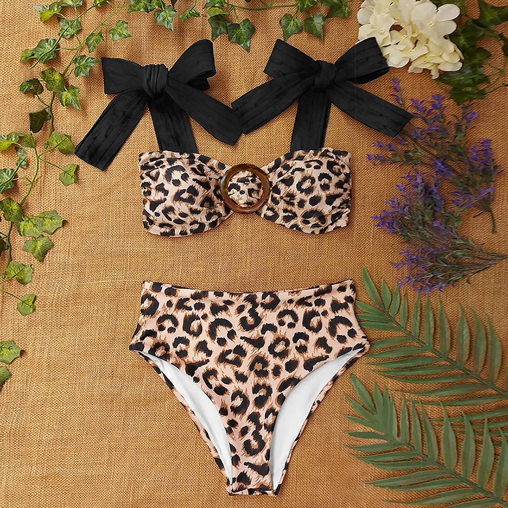2022 сексуальный комплект бикини в полоску, купальник-бандо, женский купальный костюм с бантом, пляжная одежда на бретельках, женское бикини с высокой талией