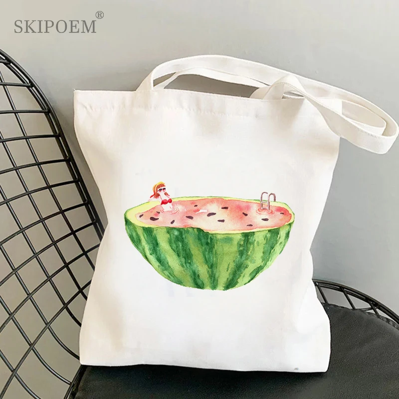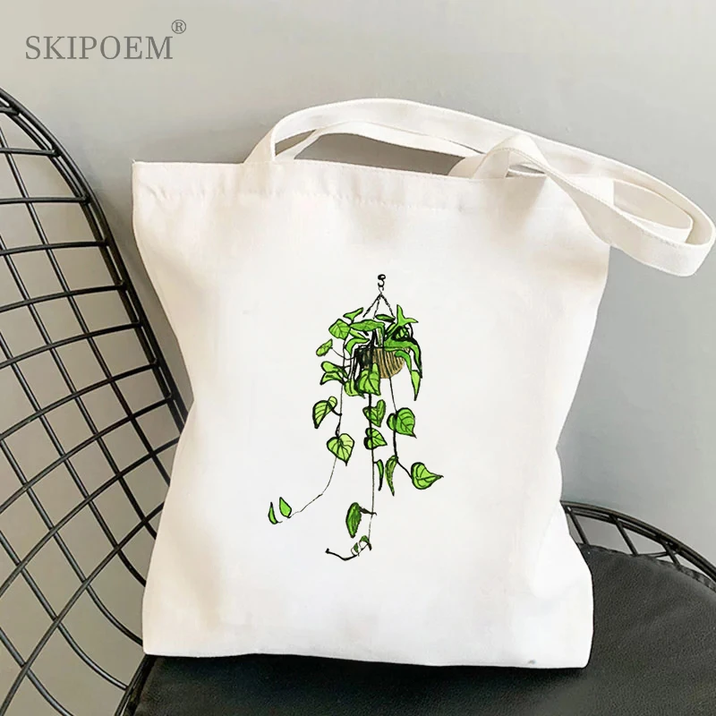 Холщовая пляжная сумка-тоут, сумки для покупок, мессенджер, белая Экологически чистая Сумочка, Женский винтажный кавайный саквояж в стиле Харадзюку С Рисунком растений