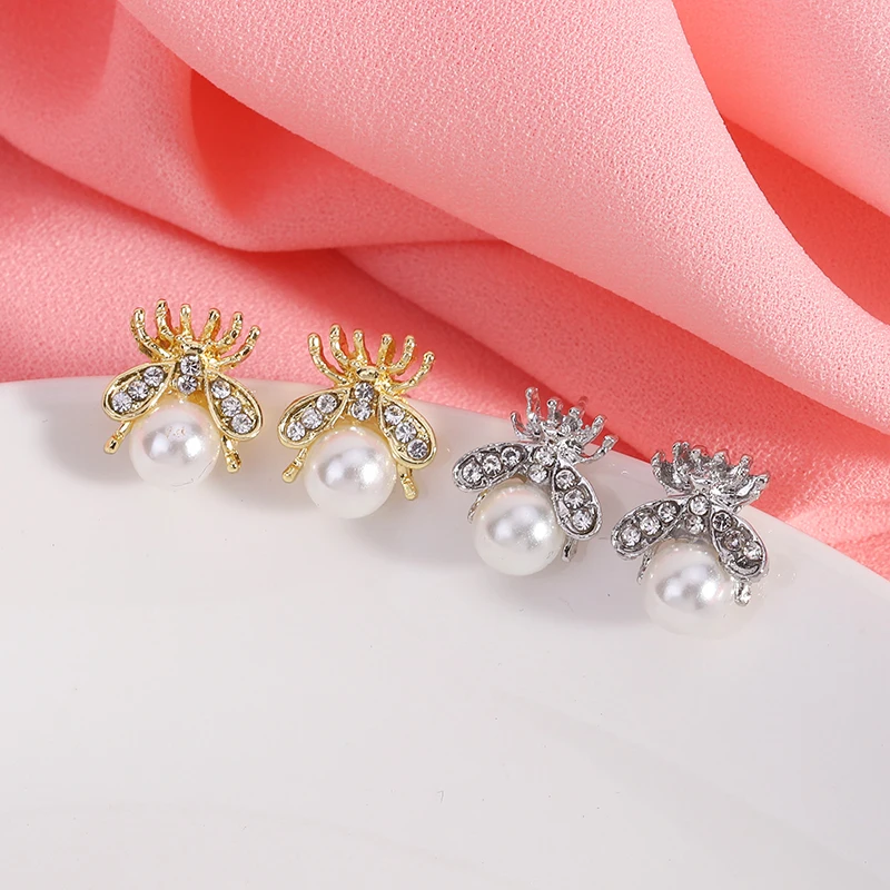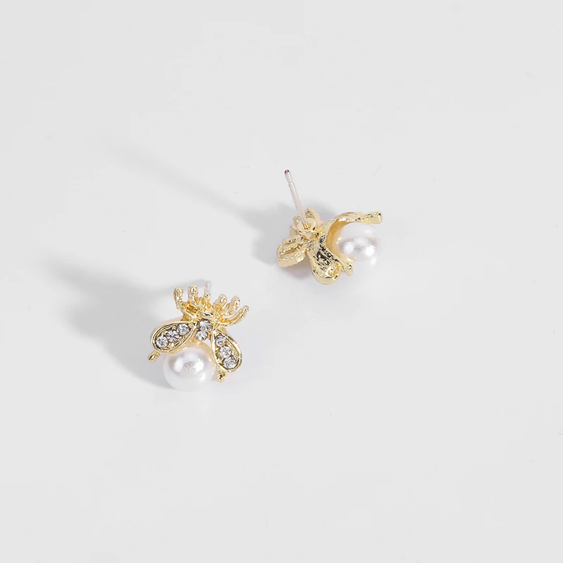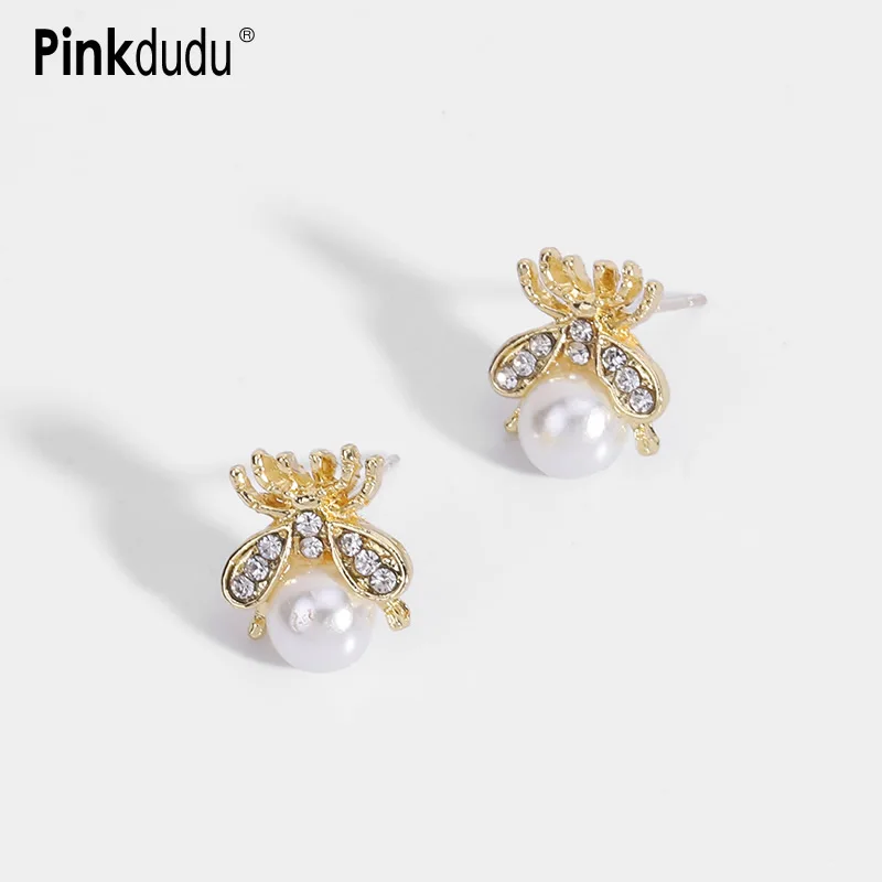 Модные милые серьги-гвоздики Pinkdudu с маленькой Пчелкой и жемчугом, простые серьги из сплава для женщин, ювелирные изделия, аксессуары, подарки PD589