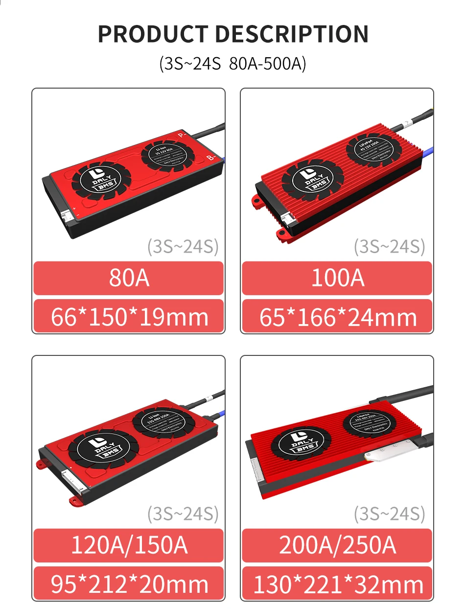 BMS 24S Daly LiFePO4 72v 30A 80A 100A 120A 150A 200A 250A 300A 400A...