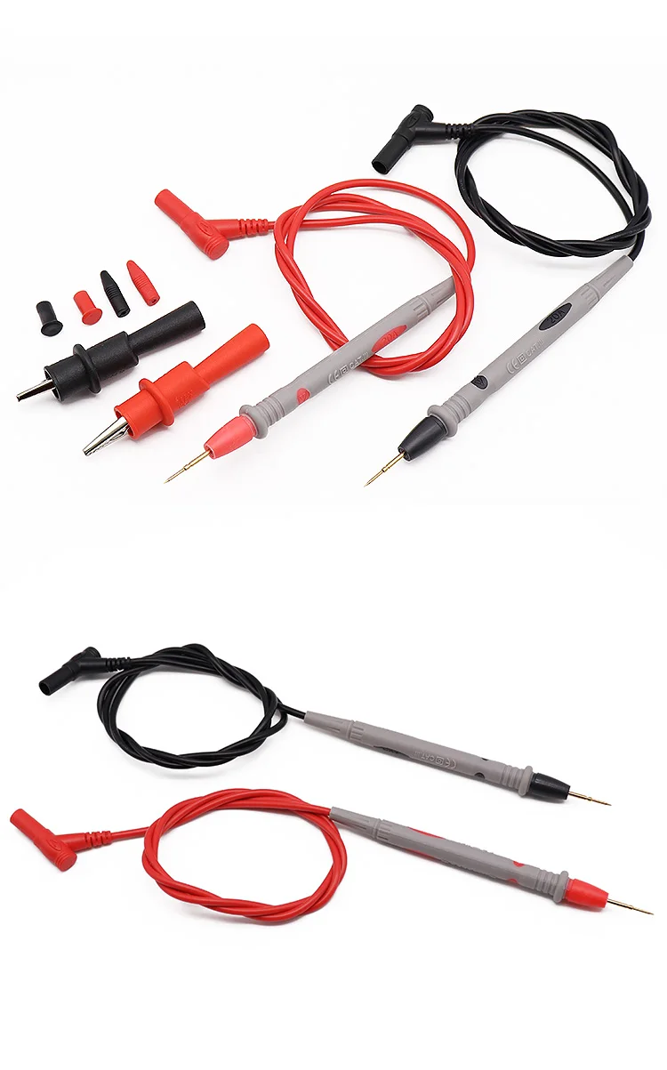 Суперские щупы, таких у меня еще не было! Очень крепкие и толстые, но эластичные провода! Наконечники острые и покрыты желтым металлом, чтобы не ржавели! В комплекте также изолированные крокодилы для облегчения замеров. Рекомендую товар и магазин! Берите, точно не пожалеете, говорю, как электромонтер с 20-летним стажем.