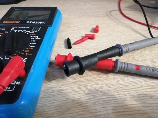 Очень хорошие щупы, в сравнении с родными небо и земля. Первое что заметил - это то на столько очень мягкий провод. Классные наконечники, очень острые иглы, можно работать даже с мелкими платами. материал скорее всего лануть. В моем случае пришлось обрезать пластиковые предохранители на щупах при входе в мультиметр. Сопротивление щупов 0.2 Ом. На меди сэкономили. Входы в мультиметр магнитные, очень жаль!