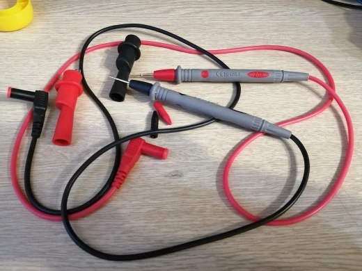 Выиграл в халяве. Первый раз и получил то, о чем давно мечтал, но покупать не видел необходимости в ввиду имения штатных проводов от мультиметра, а зря. Материал силикон - в чем преимущество - не должно ломаться на морозе при отрицательных температурах. Вожу мультиметр в машине, работаю слаботочником на улице. Очень острые щупы в защитных колпаках, надеюсь не сломаю при активных транспортировках. Длина провода около метра