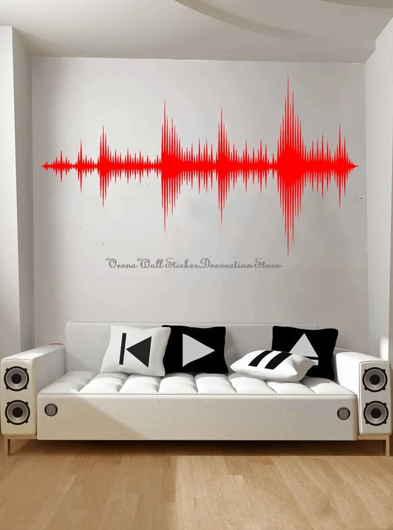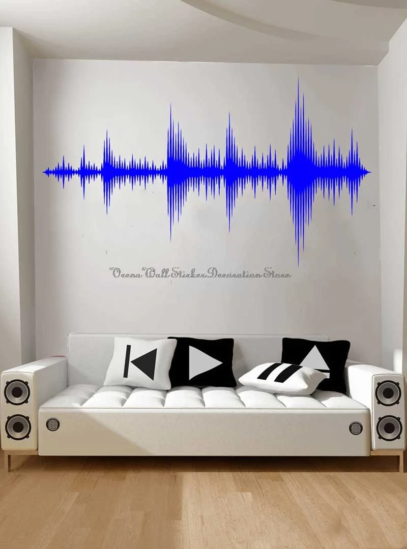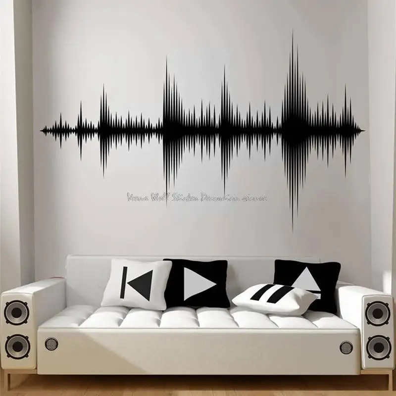 Звуковая волна Боинг, настенная наклейка, записывающая студия, аудио динамик, мелодия, музыкальная комната, продюсер музыки, украшение комнаты, Виниловая наклейка 5