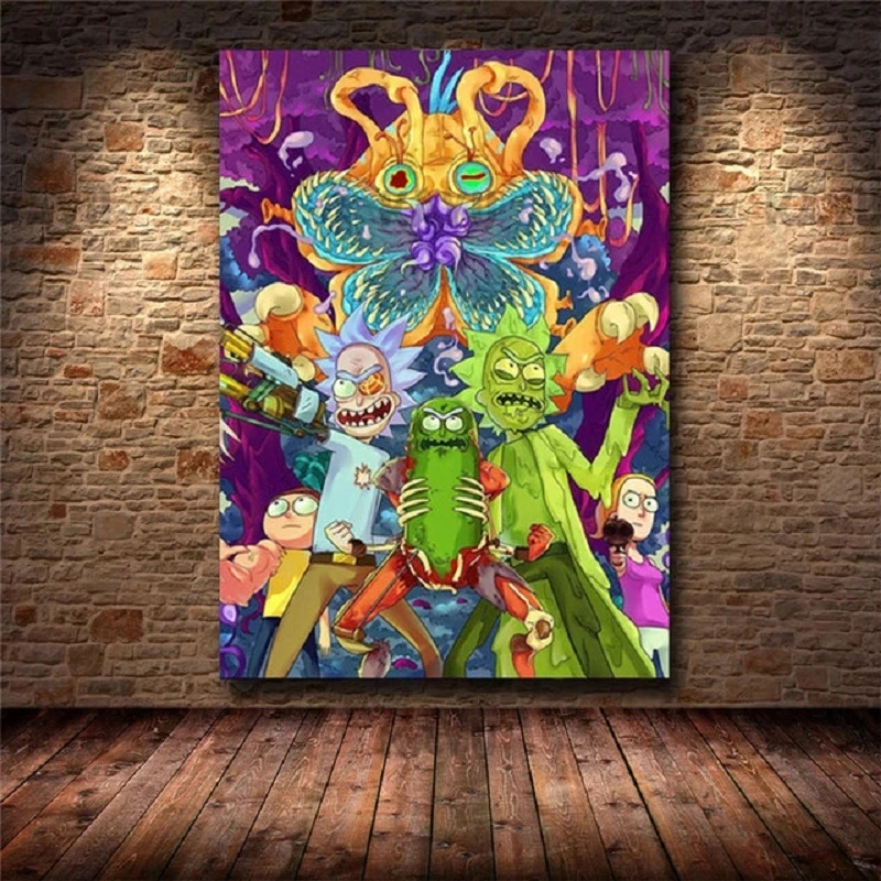 Популярный мультяшный ТВ-сериал Рик Санчеса, печатный персонаж высокой четкости, холст, живопись, Постер и печать, украшение спальни