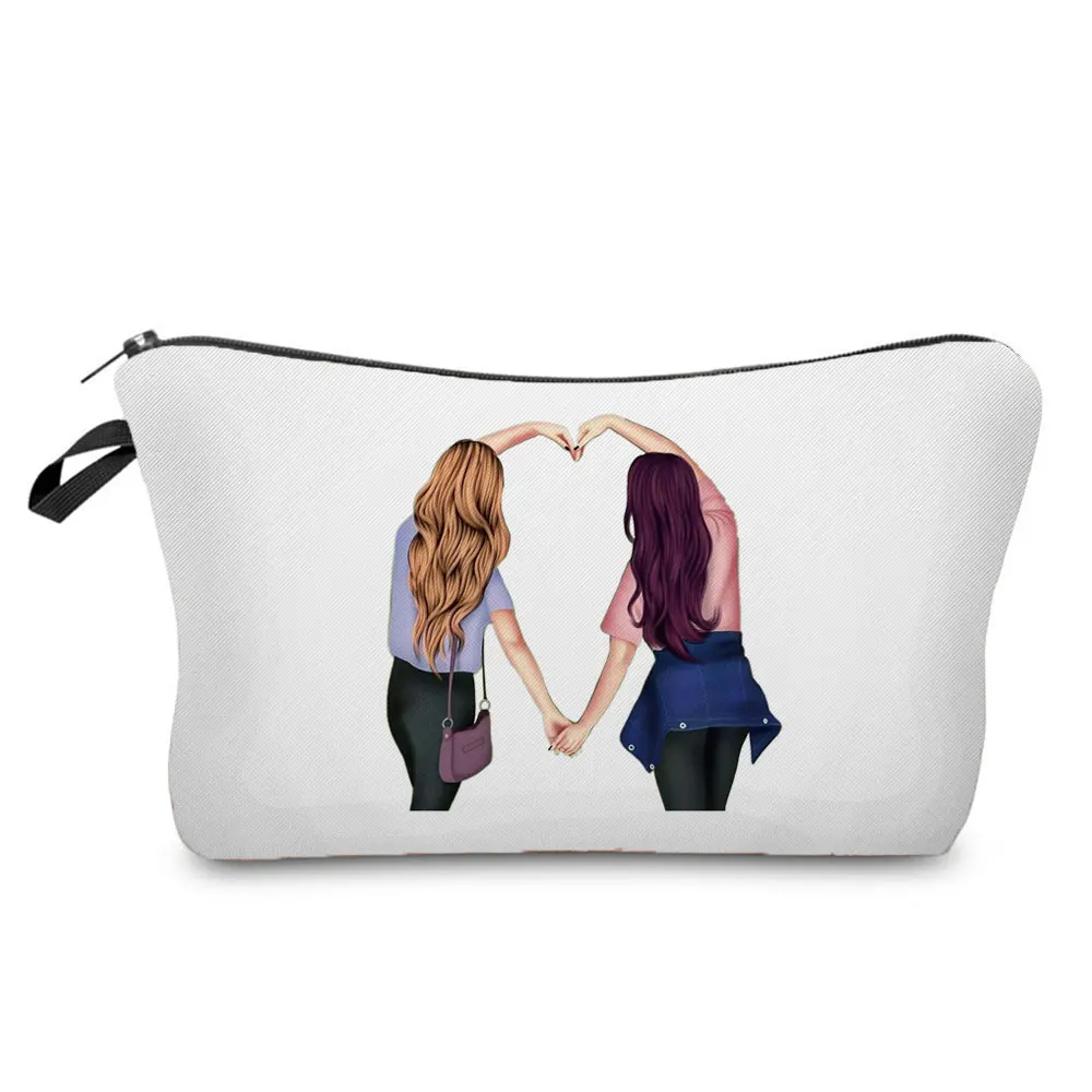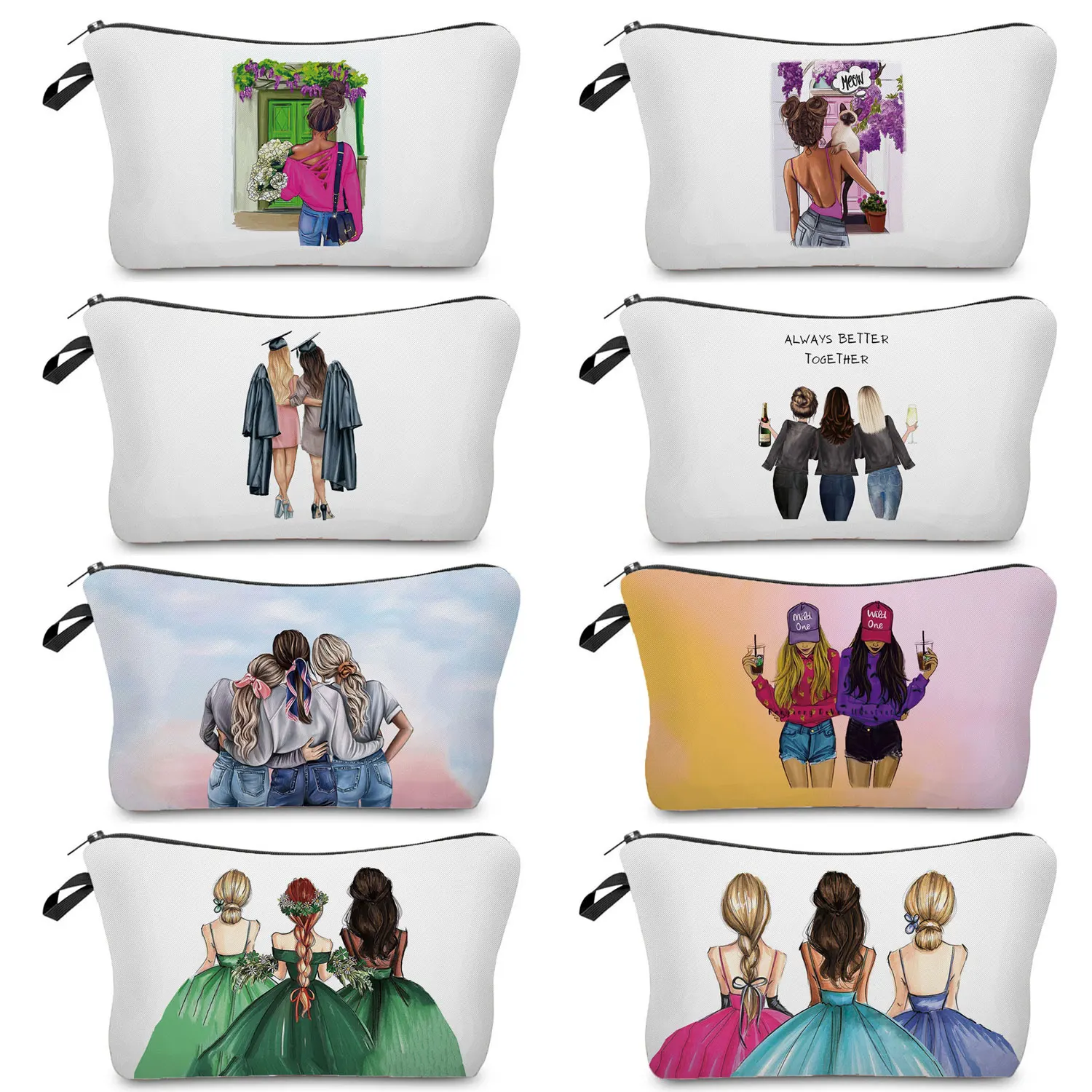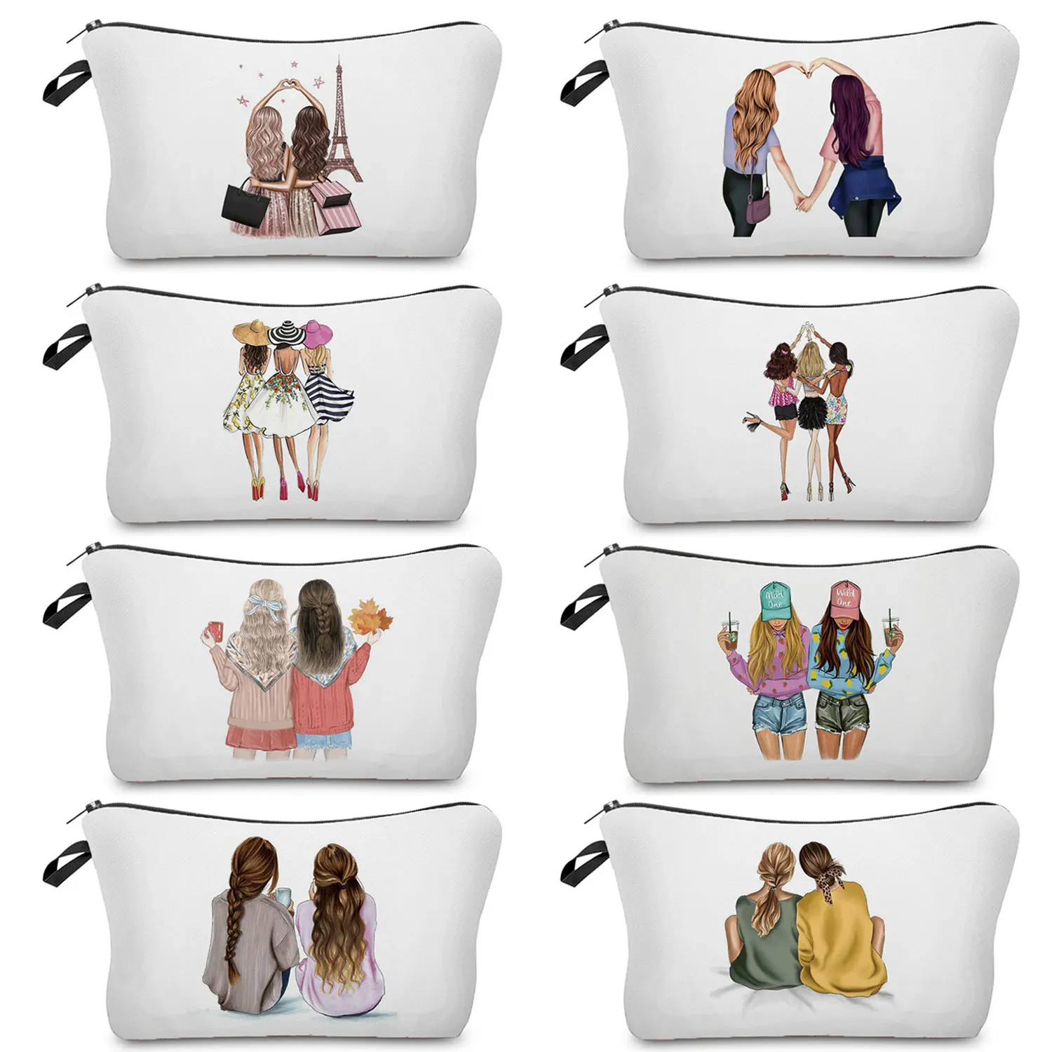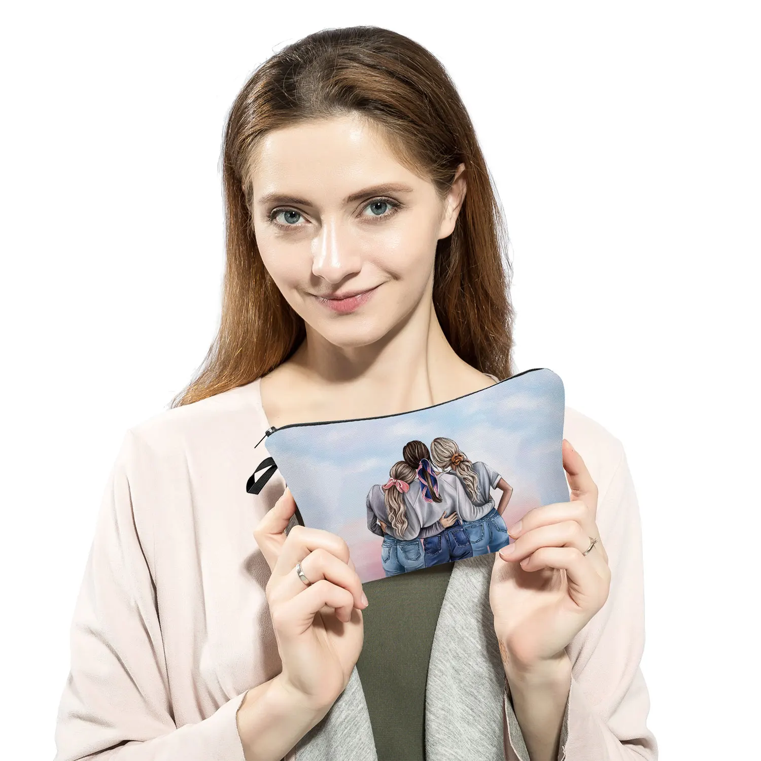 Женская косметичка с принтом сестра подруга, женские сумочки, кошелек для хранения монет, новые сумки для макияжа с молнией, детский чехол-карандаш