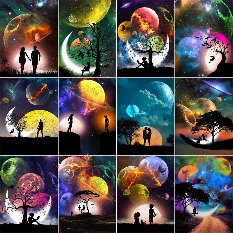 Картина для рисования по номерам на холсте, луна, река, набор для р...
