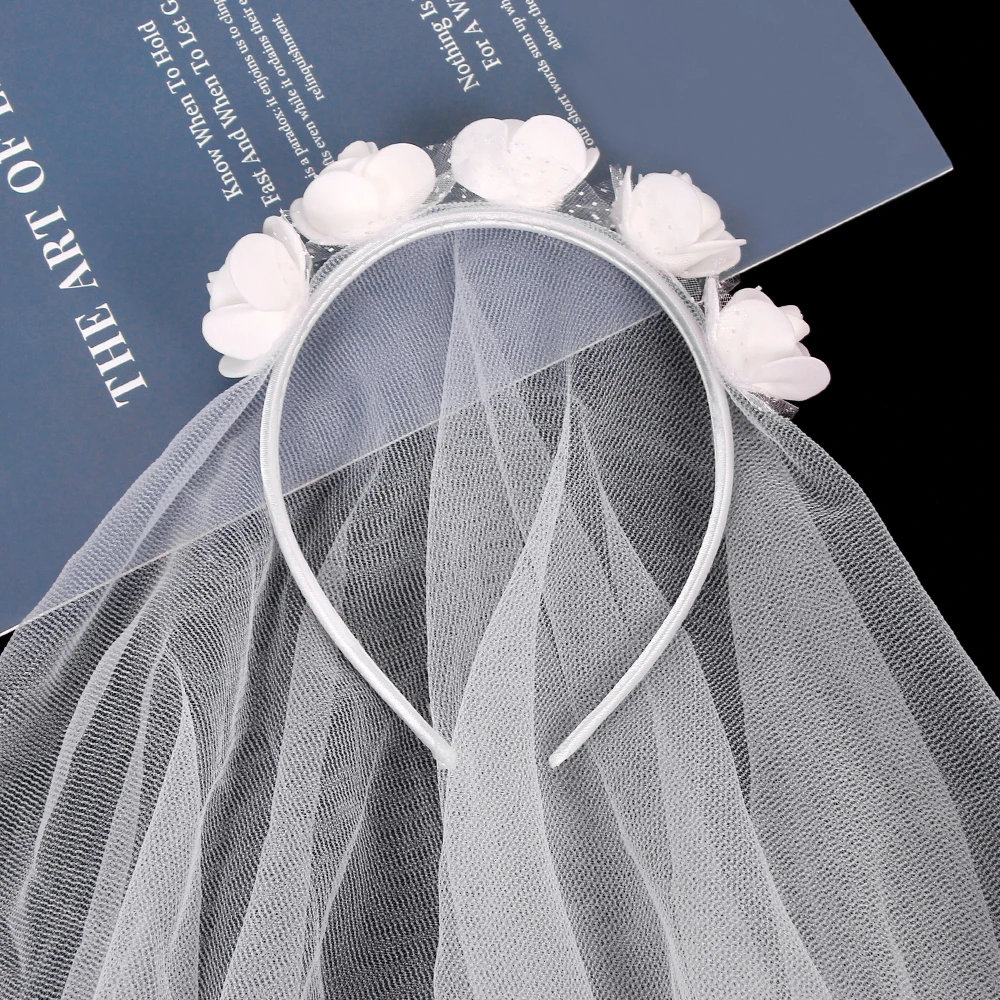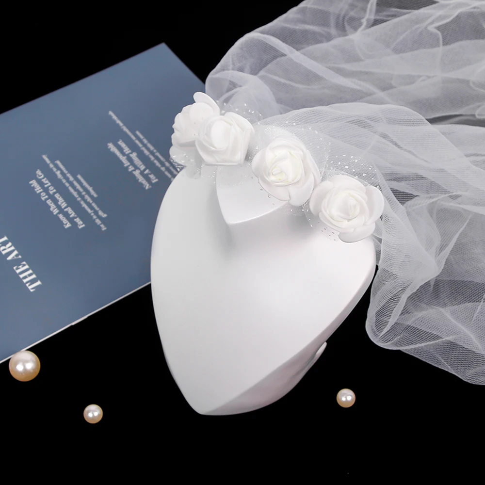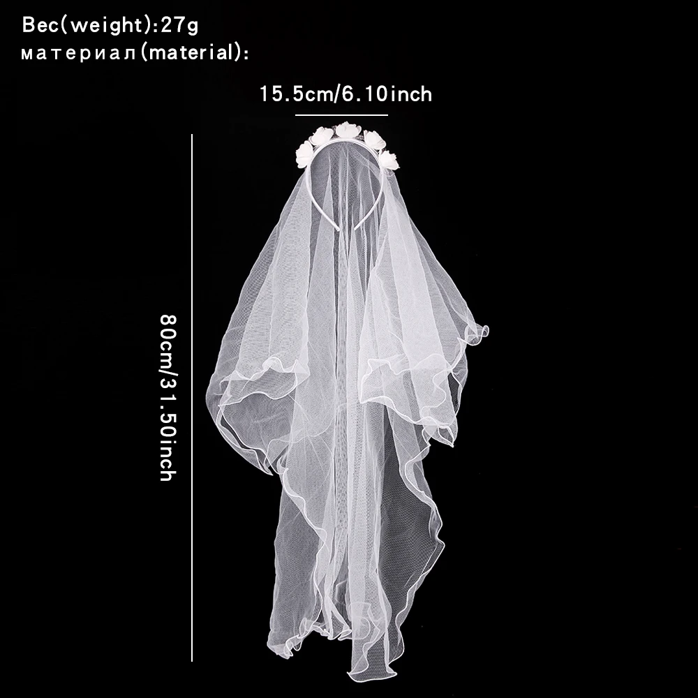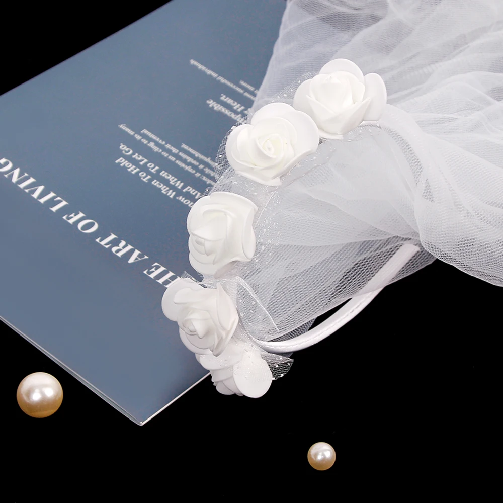 Однотонные белые цветы, двухслойная Длинная свадебная фата для невесты Вечерние темпераментное украшение для волос, фата, реквизит для фото