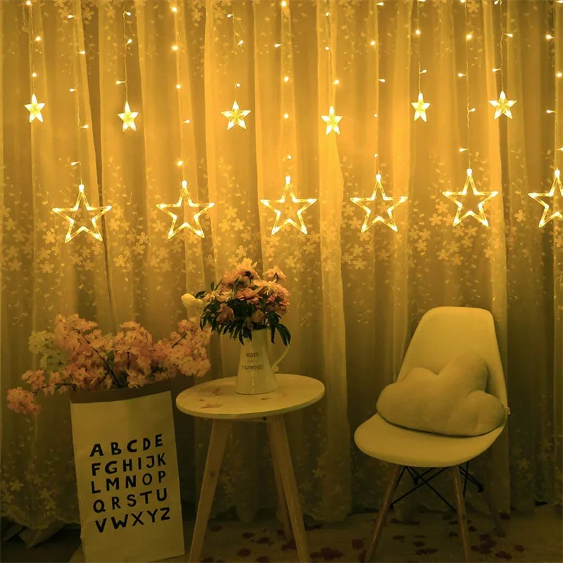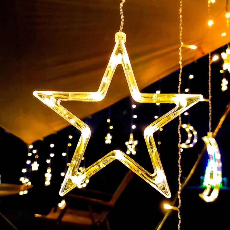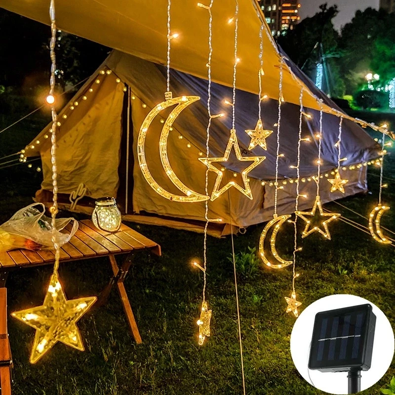 СВЕТОДИОДНАЯ Гирлянда в виде звезд на солнечной батарее, Рождественское украшение, уличная и комнатная лампа-занавеска для спальни, дома, вечеринки, свадьбы