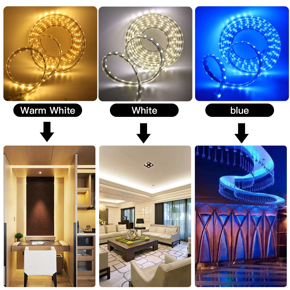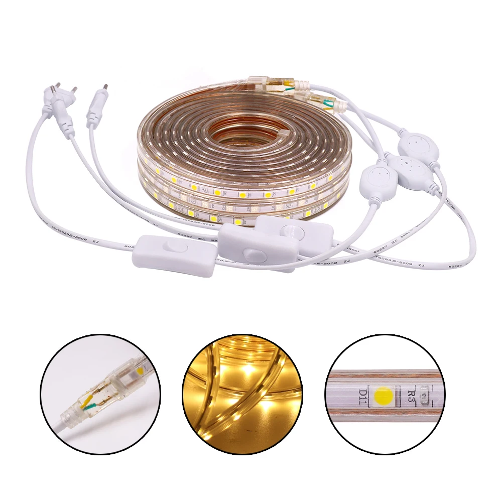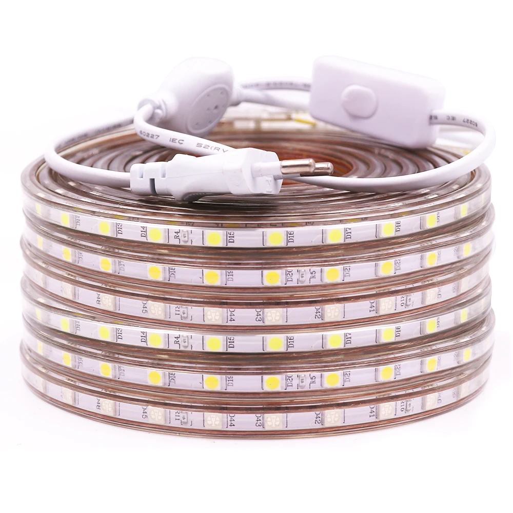 Светодиодная лента SMD5050, гибкая Водонепроницаемая LED полоска с выкл.вкл., 220 В переменного тока, 60 светодиодовм, белыйтеплый белый свет