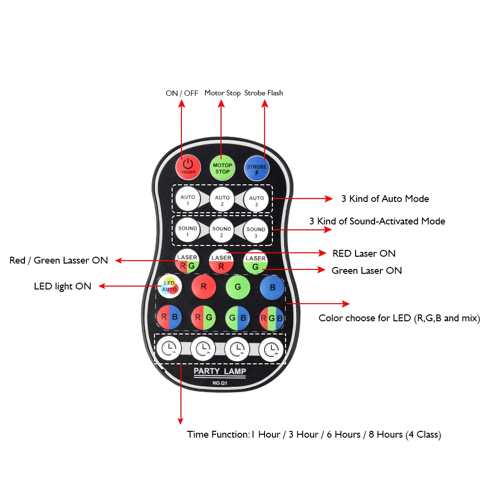 1. Пульт дистанционного управления контролирует несколько режимов работы: автоматический режим: Случайные цвета Создают Романтическую расслабляющую атмосферу. Режим вспышки: цвета появляются и быстро исчезают. Режим активации звука: светильник меняет цвет и скорость с ритмом музыки (аккумулятор в комплект не входит!)