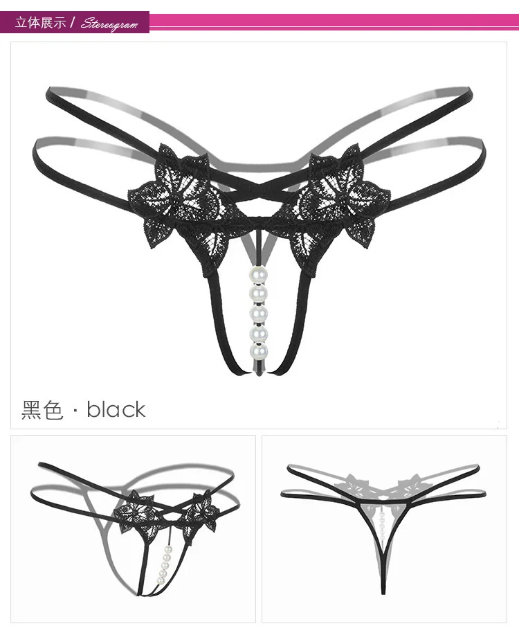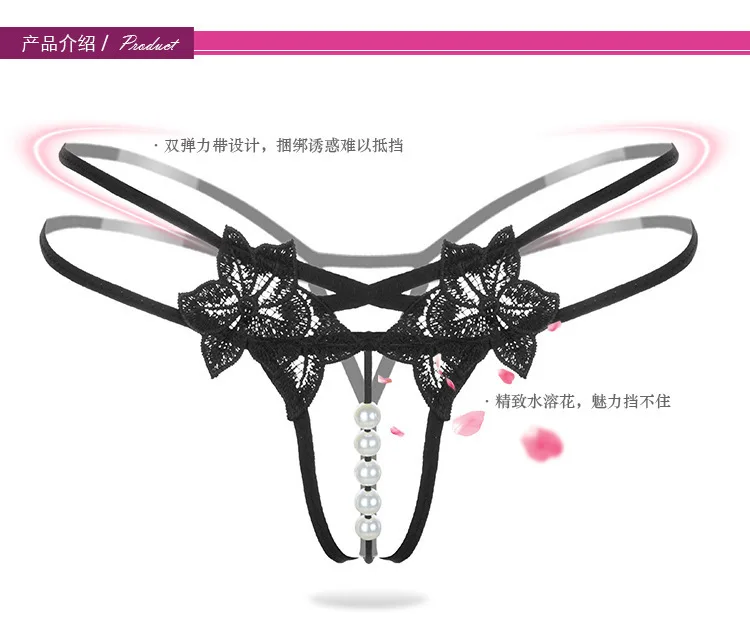 Сексуальные трусики, стринги с цветами, женское нижнее белье с жемч...