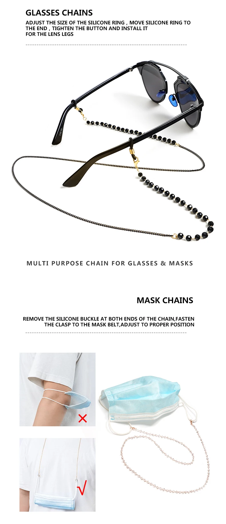Цепочка для очков Skyrim, элегантный прозрачный шнурок из бисера, с цепочкой для солнцезащитных очков, шнур для очков