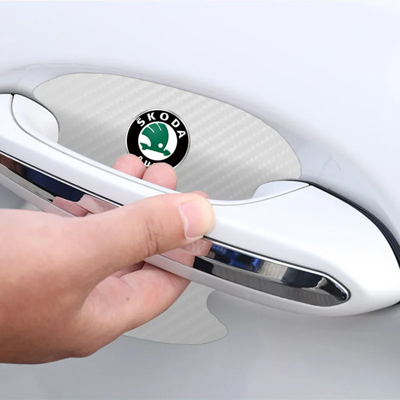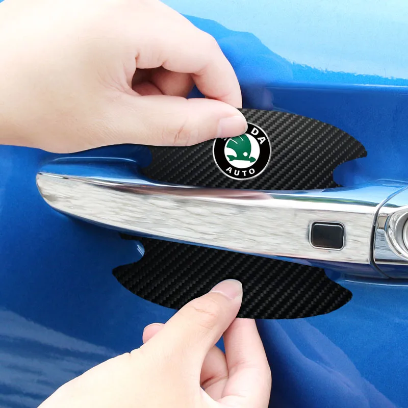 4 шт., защитные наклейки на дверную ручку автомобиля, из углеродного волокна