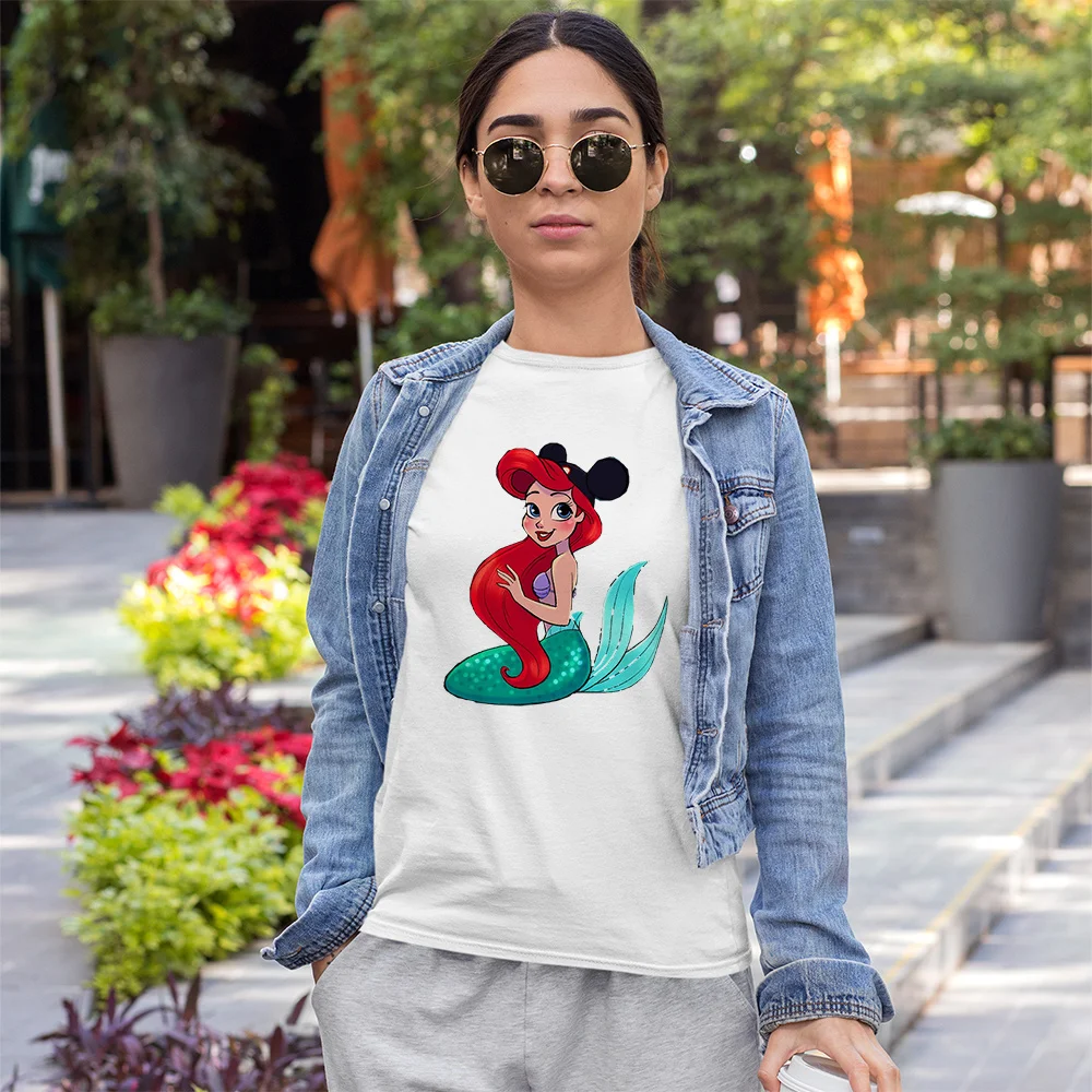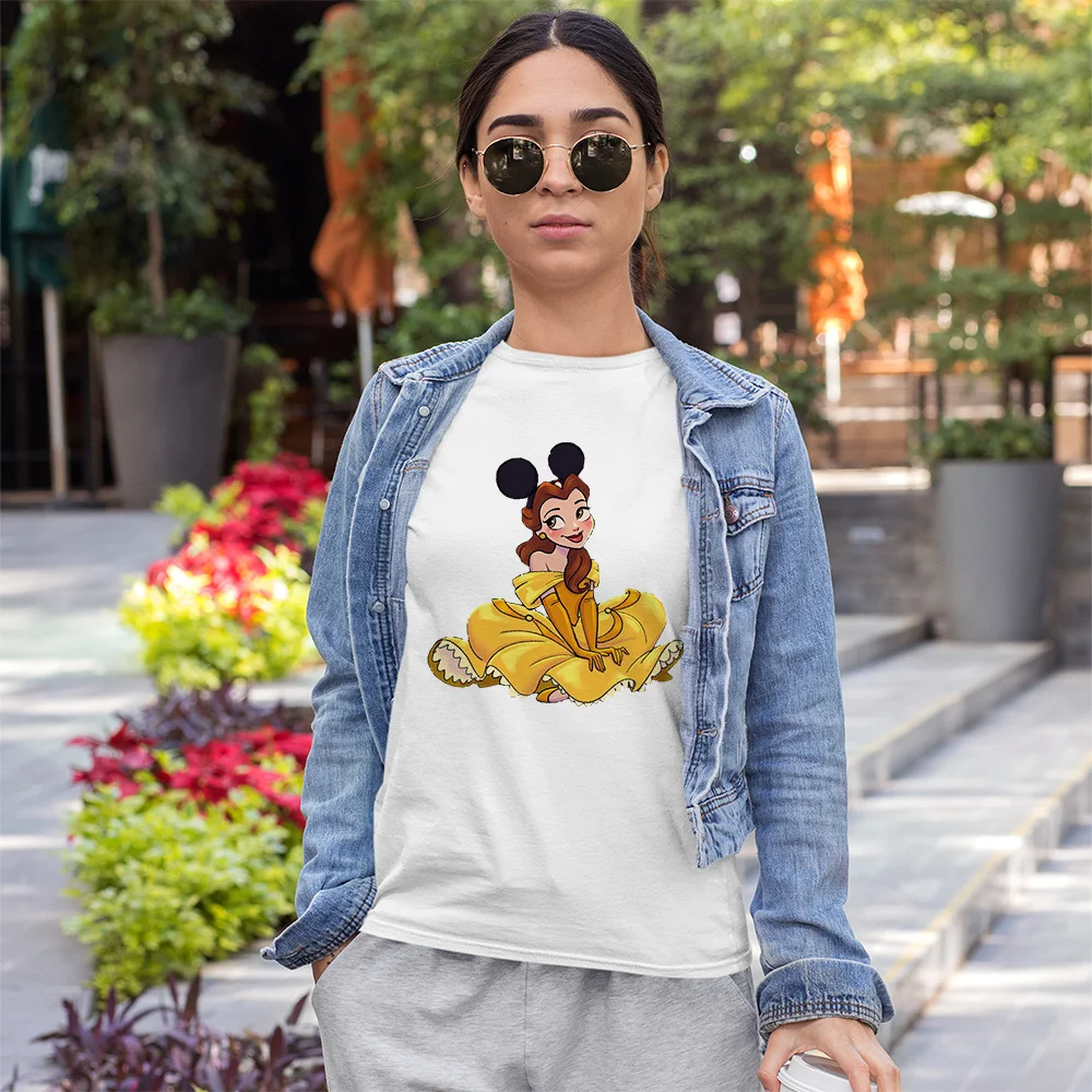 Женская футболка с ушками с Микки Маусом, принтом принцессы Арло, Харадзюку, женская Спящая красавица, летняя модная футболка в стиле хип-хоп, футболка для девочек
