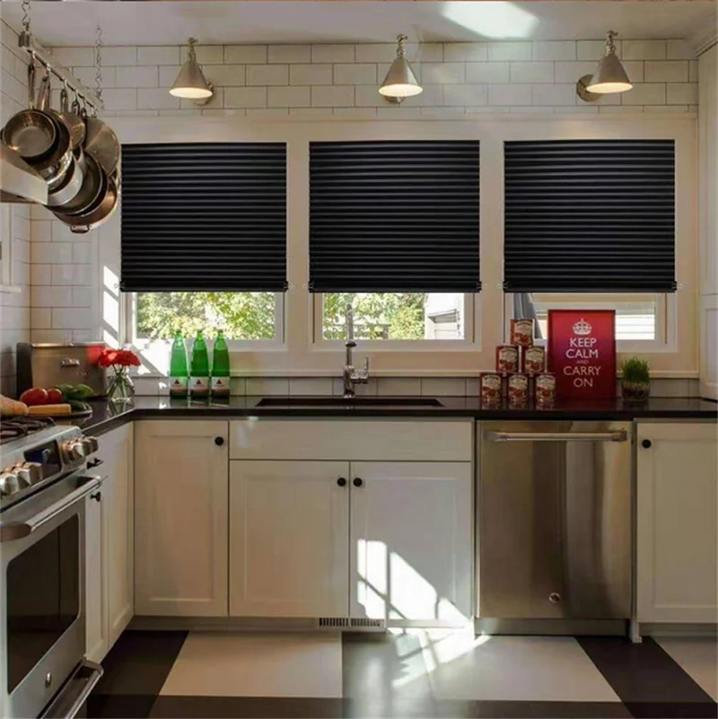 Самоклеящиеся Плиссированные Шторы, кухонные полузатемняющие оконны...