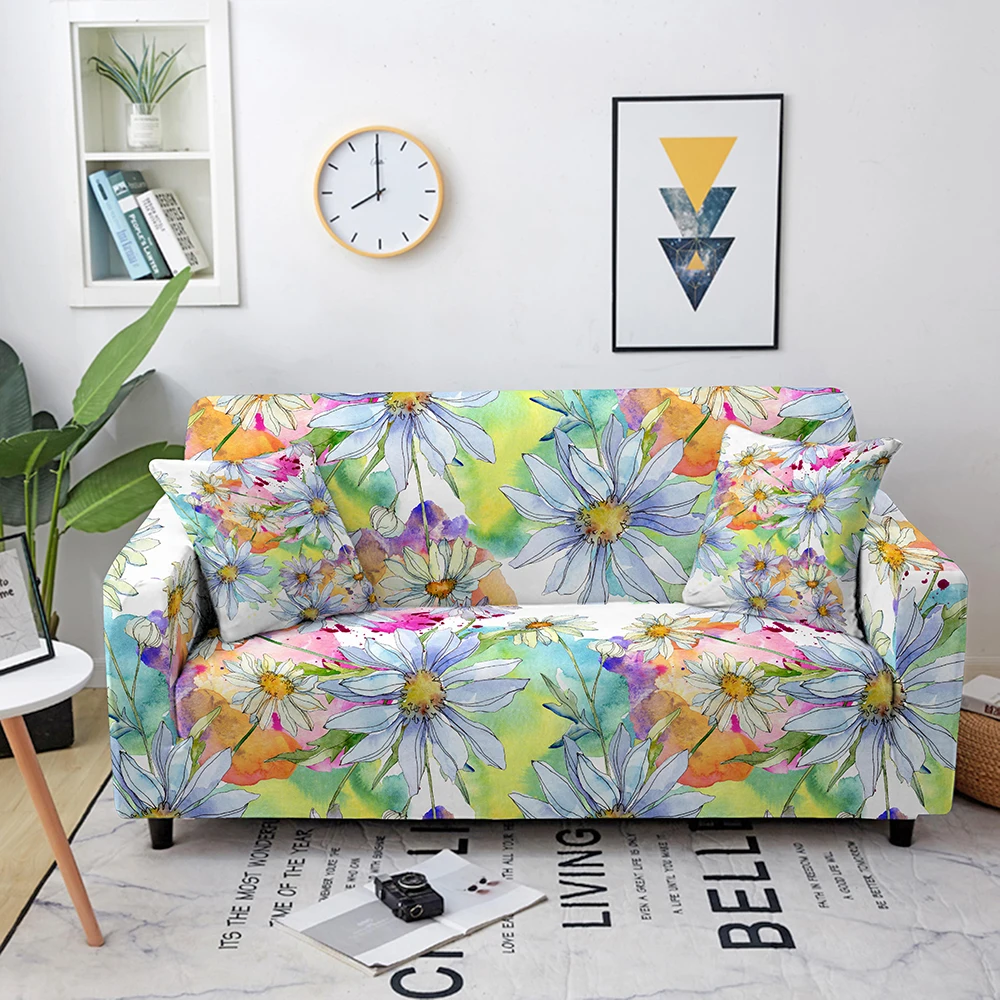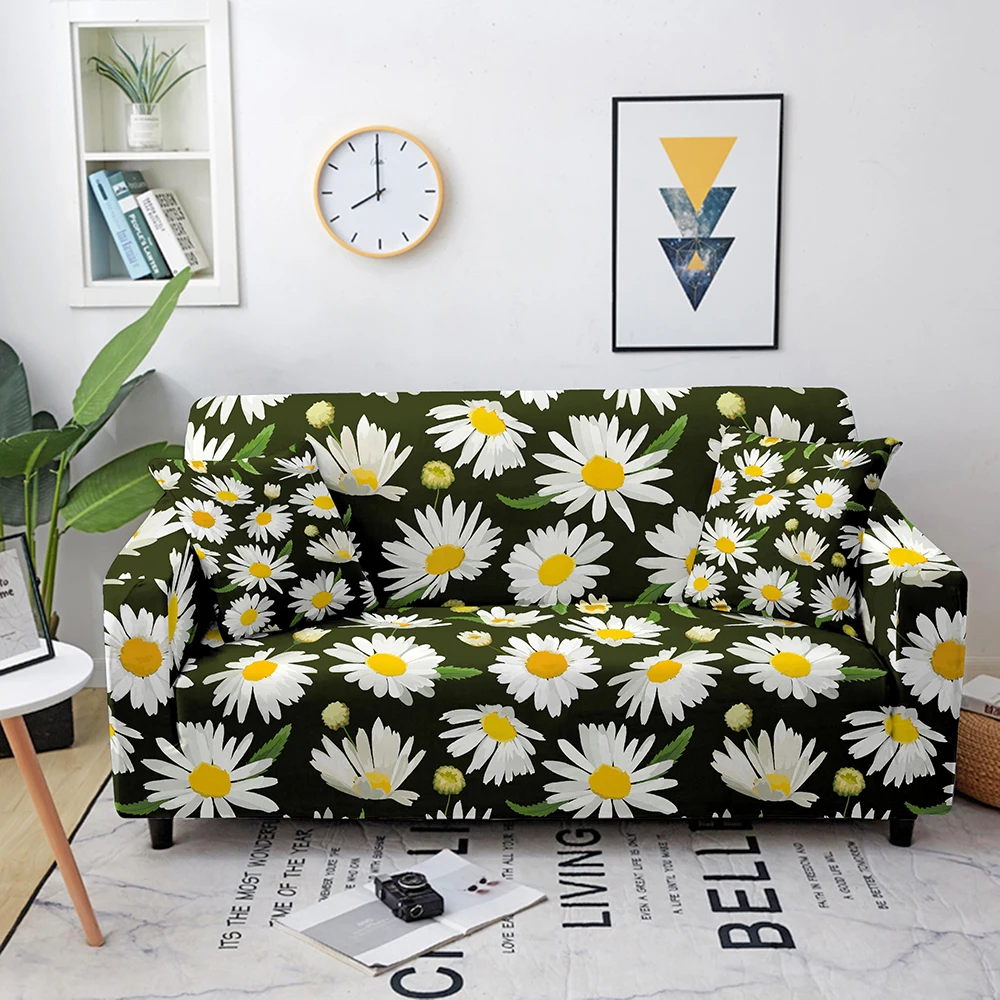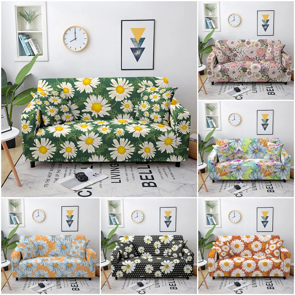 Эластичный чехол для дивана, эластичное покрытие на 3 места с принтом маргариток, для гостиной