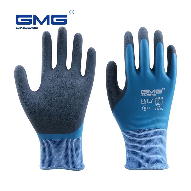 Рабочие перчатки, защитные перчатки для работы, синие, полиэфирные, серые, латексные, песчаное покрытие, для сада, сельского хозяйства, строительные водонепроницаемые перчатки