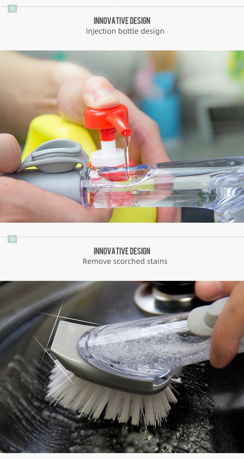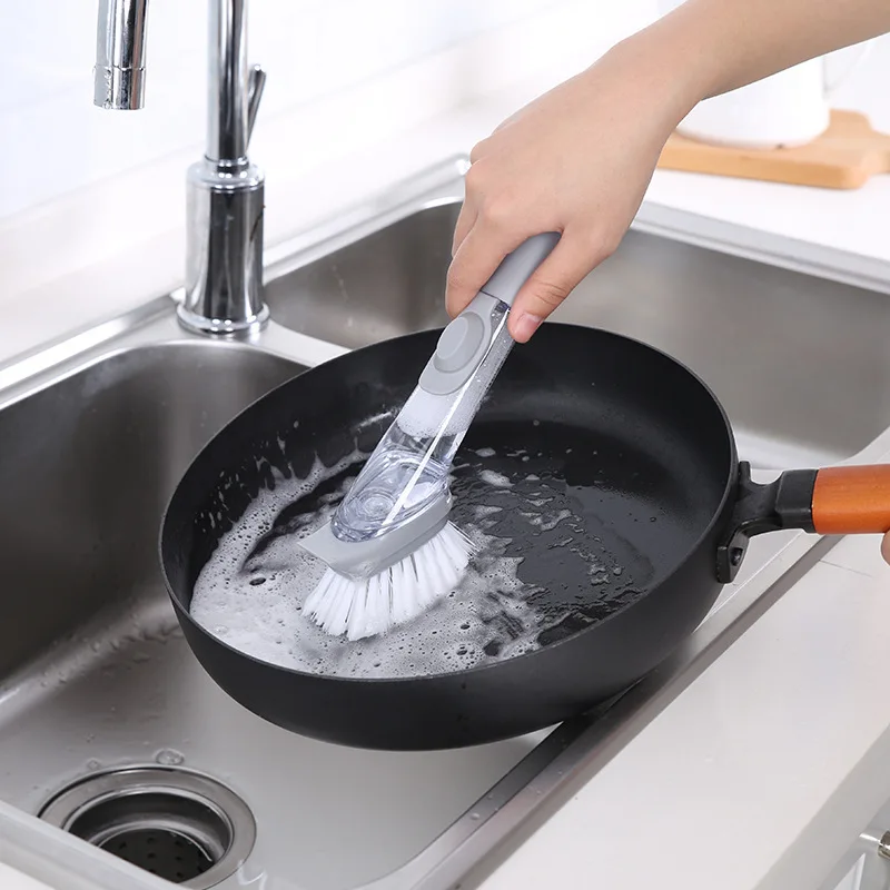 Гидравлическая щетка для мытья посуды с длинной ручкой, автоматическая губка для наполнения жидкостью, щетка для мытья посуды, чистящая щетка, гидравлическая щетка для мытья посуды