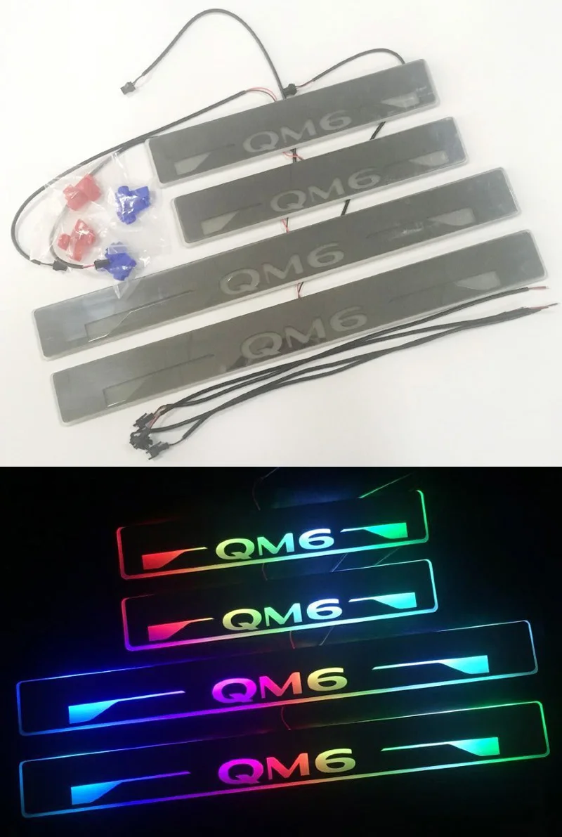 Цветная Акриловая движущаяся светодиодсветодиодный приветственная педаль SNCN, Накладка на порог, светильник для Renault Koleos QM6