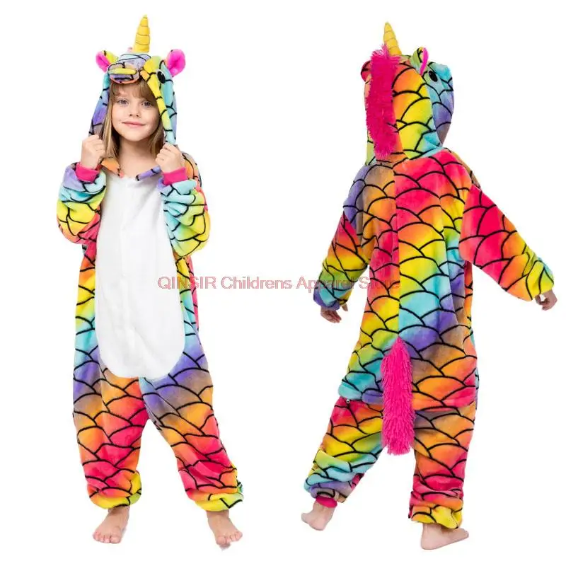 Детская Пижама единорог пижамы животные кигуруми волк костюм мультфильм аниме косплей одежда для детей мальчиков зимние теплые комбинезоны
