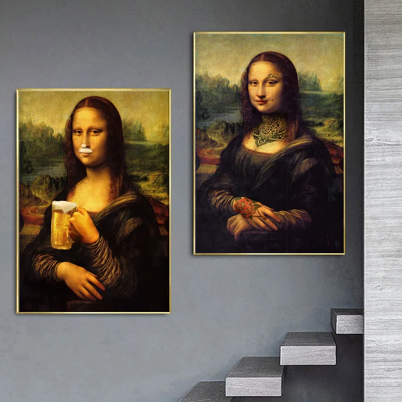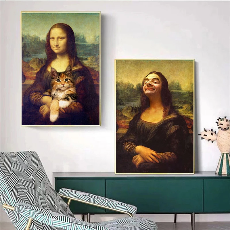 Современный настенный художественный холст Забавный Мона плакат лисы и принты Холст Картина гостиная Бар Отель декоративная роспись росписи