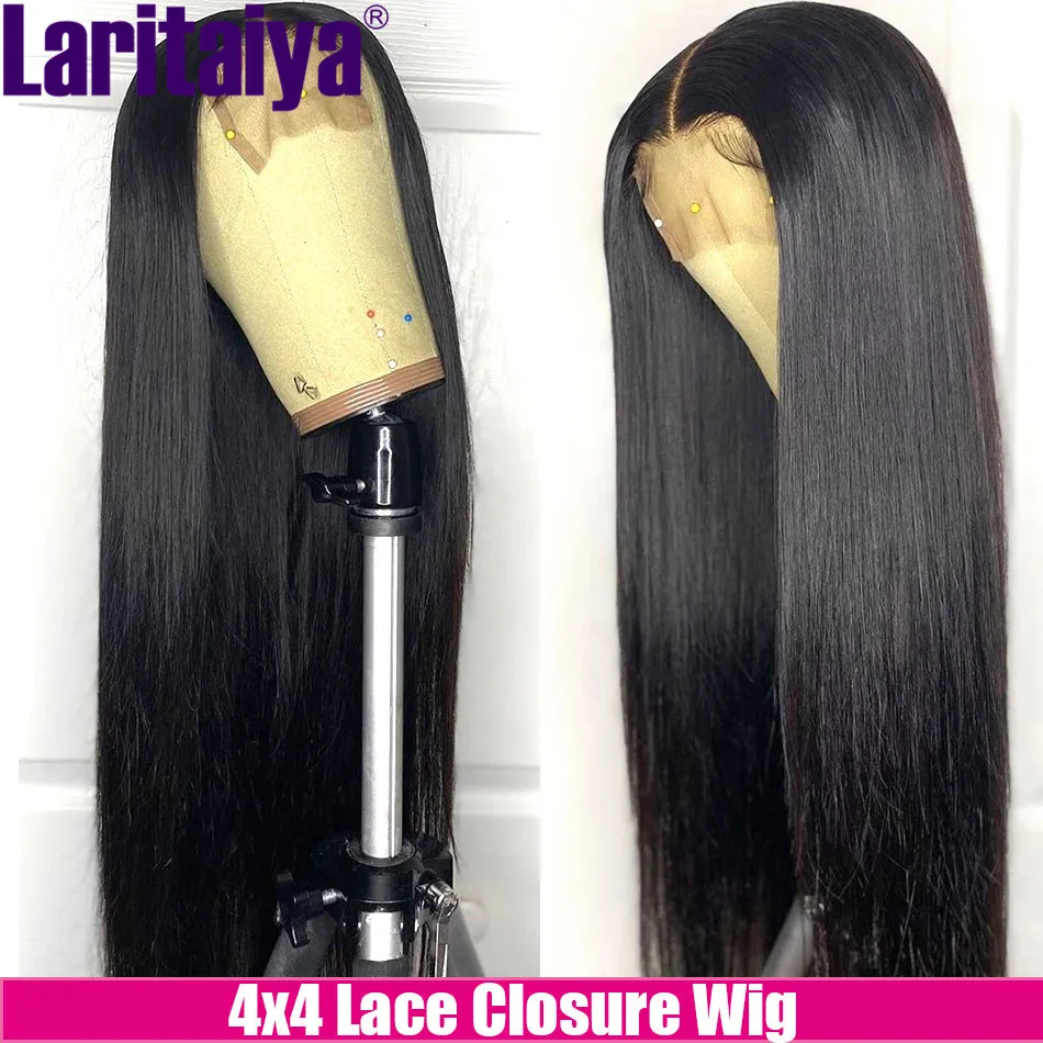 Laritaiya перуанские человеческие волосы, парик, прямые человеческие волосы, парики, Т-образная часть, прозрачный кружевной парик, 4x4, предварительно выщипанные парики на шнурках