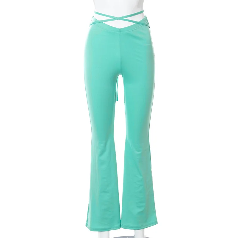 Брюки-клеш Женские со шнуровкой, пикантные Стрейчевые штаны с низкой посадкой, черные укороченные Слаксы с перекрестными лямками, в стиле Харадзюку