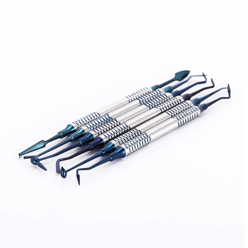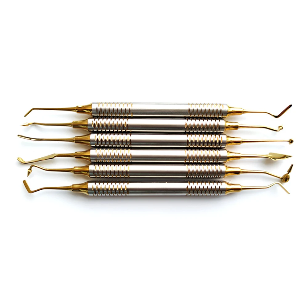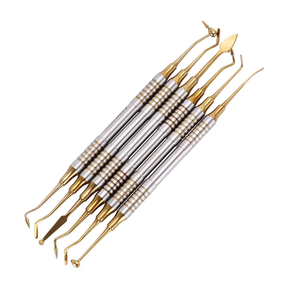 Оптовая продажа, 6 шт./набор, набор наполнителя из смолы с титановым покрытием, стоматологическая медицинская зубная композитная смола, наполнитель, шпатель